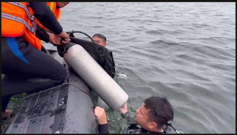 Các tốp thợ lặn triển khai công tác tìm kiếm.