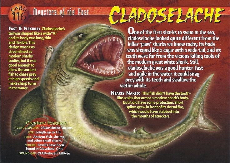 Một trong những loài cá mập cổ nhất thế giới. Cladoselache xuất hiện vào cuối kỷ Devon, hơn 100 triệu năm trước khi khủng long tồn tại. Đây là một trong những loài cá mập đầu tiên có cấu trúc cơ thể hoàn thiện và linh hoạt. Ảnh: Pinterest.
