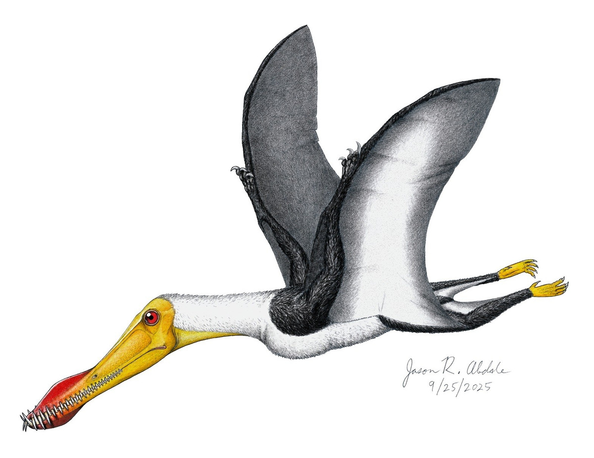 Sải cánh lớn giúp bay xa trên biển. Anhanguera có sải cánh khoảng 4–4,5 mét, đủ lớn để bay lượn trên các vùng biển cổ đại. Với đôi cánh màng da kéo dài từ thân đến các ngón tay dài, chúng có thể tận dụng gió biển để bay xa mà không tốn quá nhiều năng lượng. Ảnh: Pinterest.