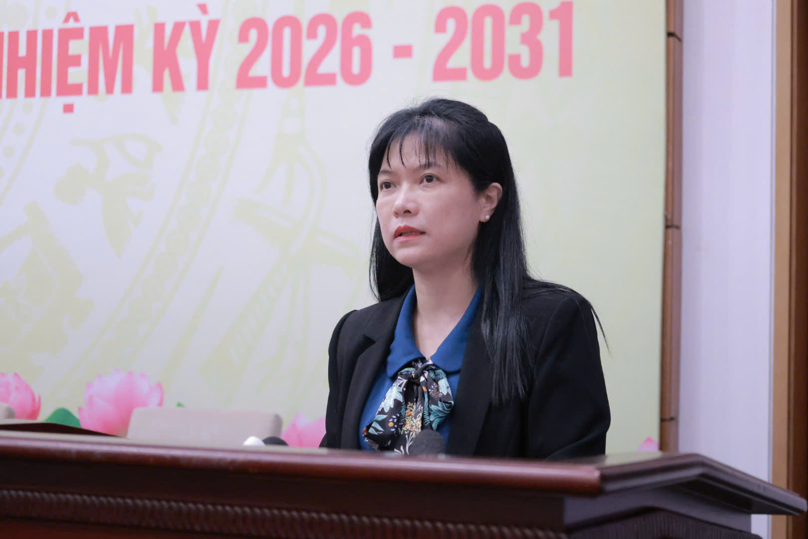 Bà Tạ Thị Yên, Phó Chủ nhiệm Ủy ban Công tác đại biểu, Phó Chánh Văn phòng Thường trực Hội đồng Bầu cử quốc gia thông tin nhanh tình hình bầu cử. Ảnh: Trang Trần.