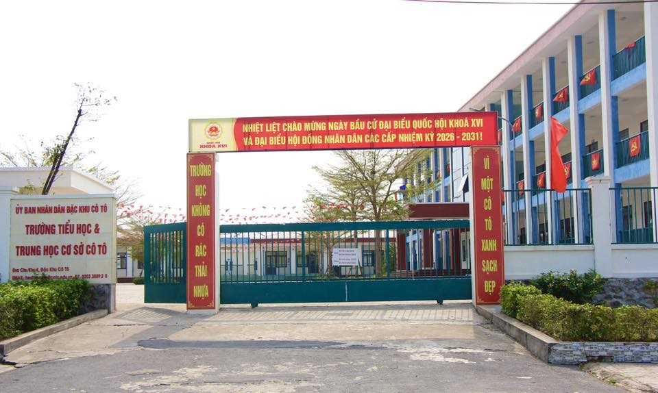 Một trường học ở đặc khu Cô Tô được trang trí chào mừng ngày bầu cử. Ảnh: THU BÁU