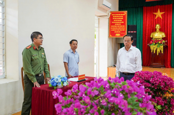 Lãnh đạo Đặc khu Côn Đảo kiểm tra công tác niêm yết danh sách cử tri tại một điểm bầu cử.