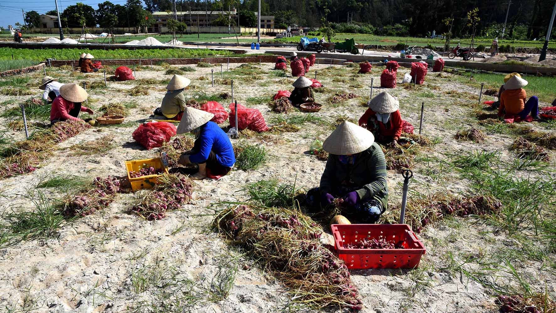 Thu hoạch hành tại xã An Hải. Ảnh: NSNA Nguyễn Đăng Lâm