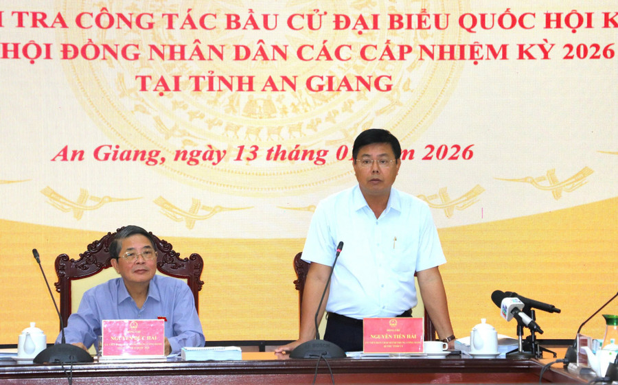 Ngày 13/1, Đoàn giám sát, kiểm tra công tác bầu cử của Ủy ban Thường vụ Quốc hội - Hội đồng bầu cử Quốc gia do Phó Chủ tịch Quốc hội Nguyễn Đức Hải làm Trưởng đoàn, đã đến làm việc tại tỉnh An Giang về công tác chuẩn bị bầu cử đại biểu Quốc hội khóa XVI và HĐND các cấp, nhiệm kỳ 2026-2031.