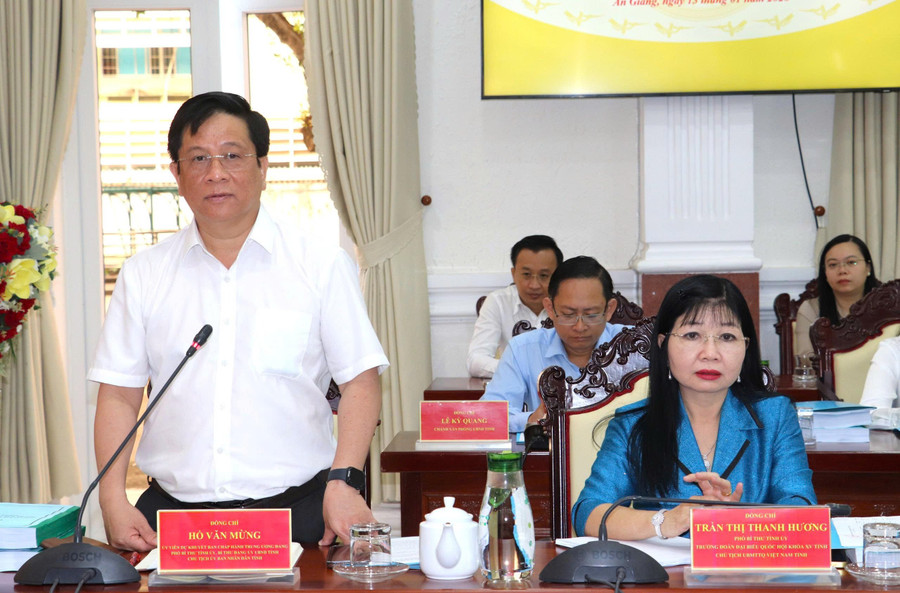 Ông Hồ Văn Mừng, Chủ tịch UBND tỉnh An Giang, phát biểu tại buổi làm việc.