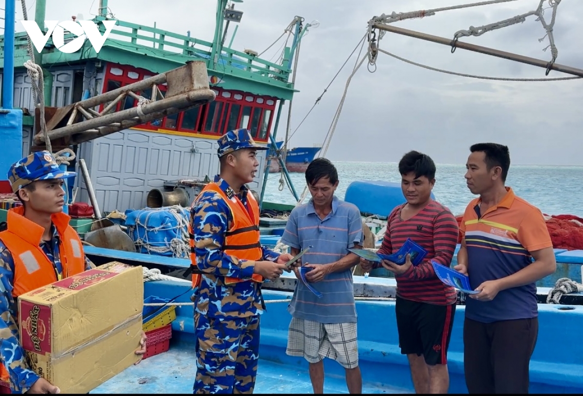 Cán bộ, chiến sĩ đảo Đá Lớn Tuyên truyền cho ngư dân về các quy định IUU.