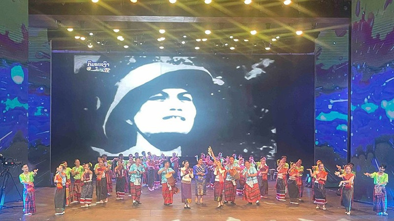 Tiết mục ca ngợi Chủ tịch Kaysone Phomvihane. (Ảnh: DUY TOÀN)