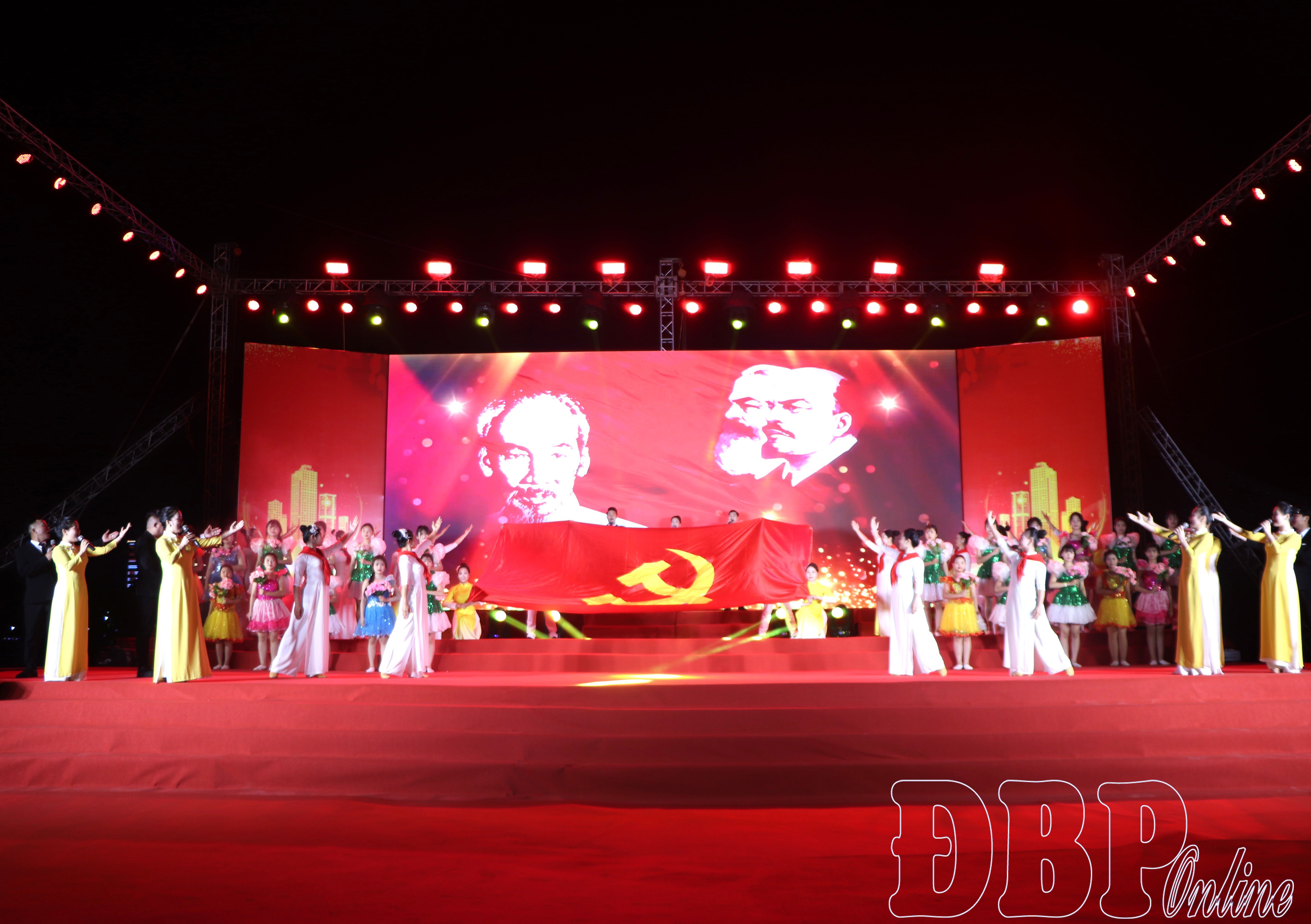 Tổ khúc hát múa Chào mừng Đảng Cộng sản Việt Nam, Ta dâng Đảng ngàn tiếng ca, mở màn chương trình nghệ thuật.
