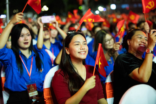 Rất đông khán giả tới theo dõi trực tiếp chương trình nghệ thuật tối 17/10.
