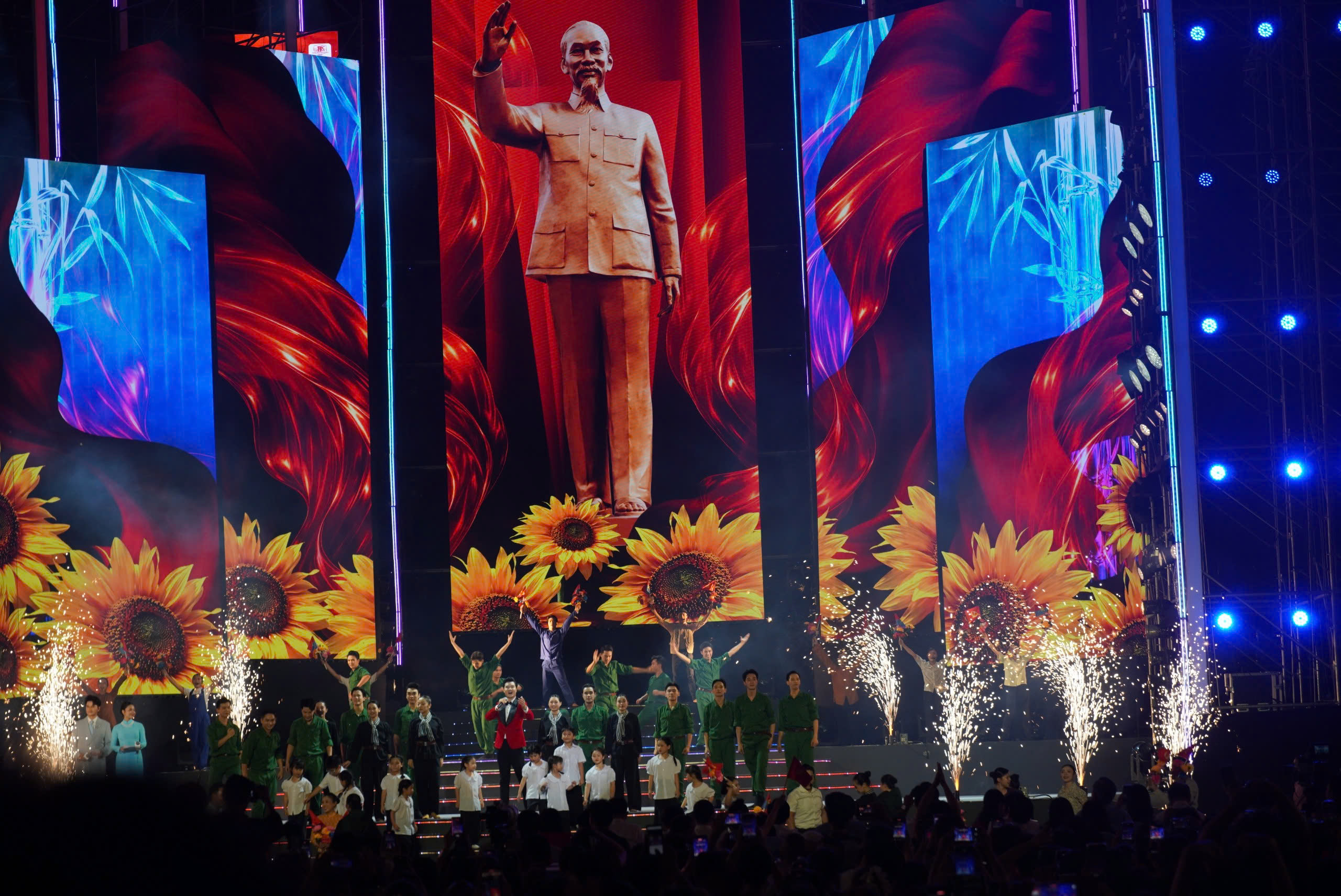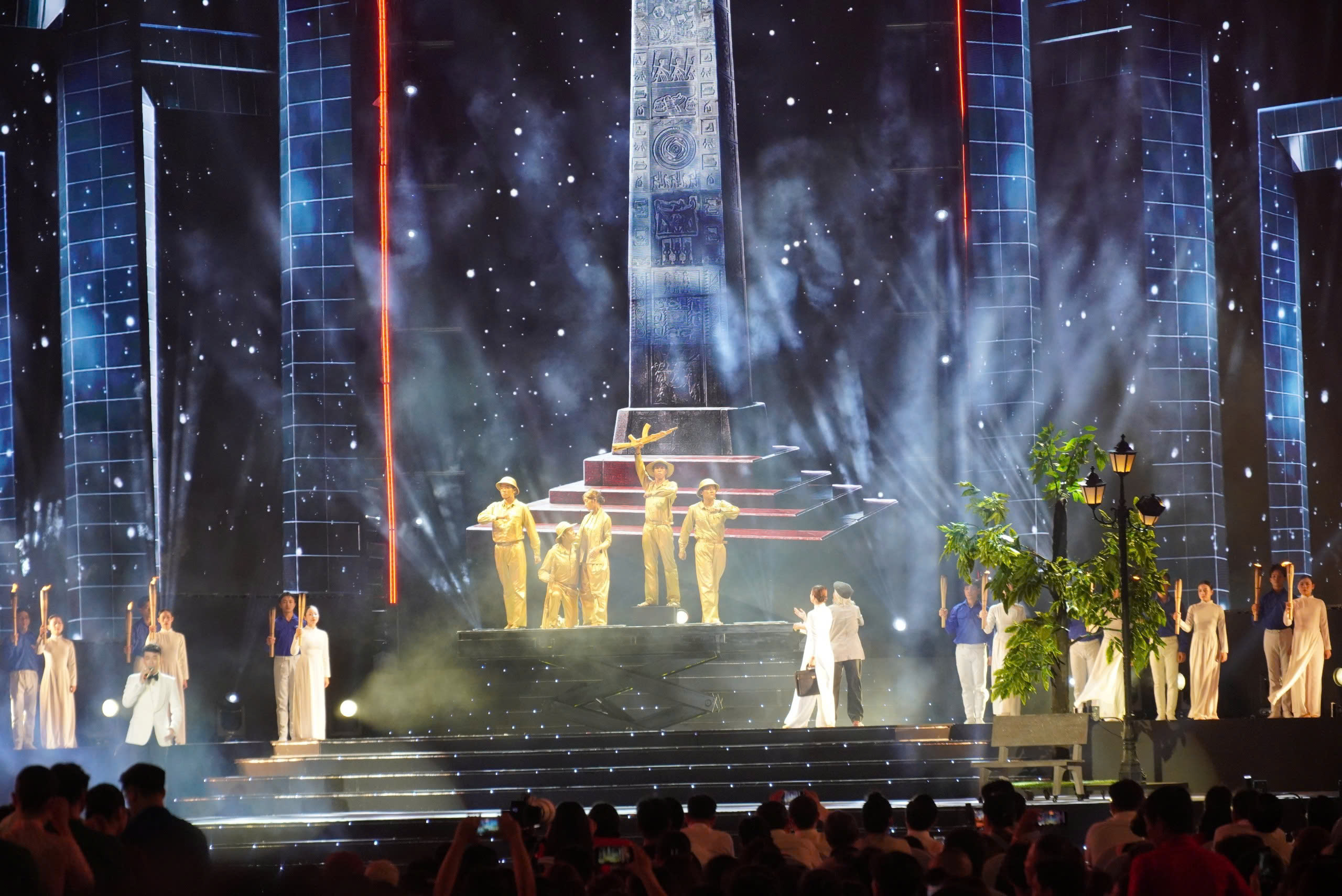 Nhiều tiết mục nghệ thuật đặc sắc tái hiện lại dấu mốc lịch sử trọng đại. Ảnh: HẢI NHI