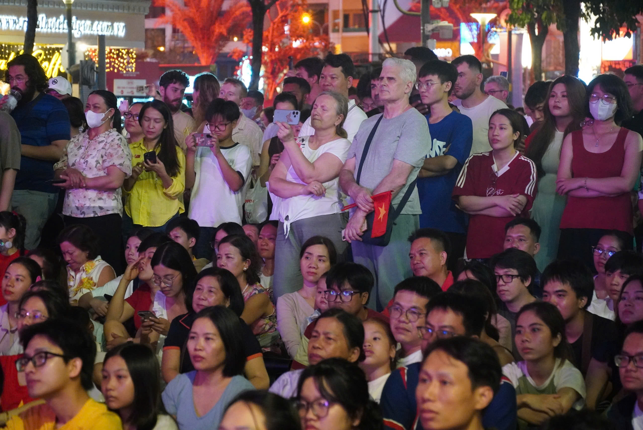 Đông đảo người dân và du khách chăm chú theo dõi chương trình nghệ thuật “Tình ca đất nước” trong không khí trang nghiêm, xúc động. Ảnh: HẢI NHI