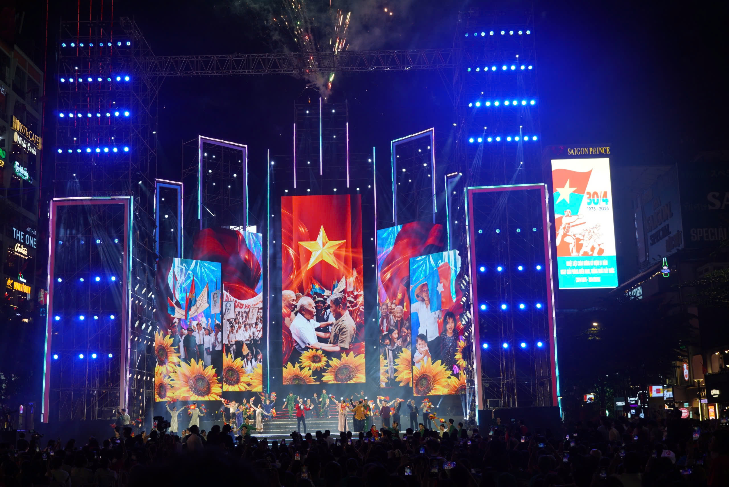 Tối 30-4, tại sân khấu đường đi bộ Nguyễn Huệ (phường Sài Gòn), Ban Tổ chức kỷ niệm các ngày lễ lớn TP.HCM tổ chức chương trình nghệ thuật đặc biệt với chủ đề “Tình ca Đất nước”.