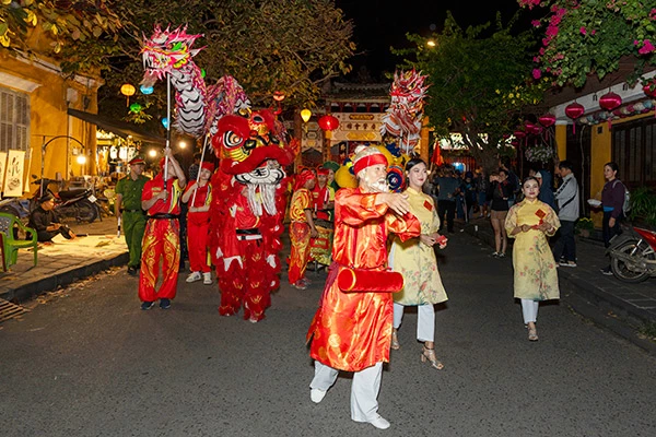 Trong đêm 29 Tết (đêm giao thừa), tại khu phố cổ Hội An, đoàn rước Sắc bùa chúc xuân với các nghệ sĩ hát múa sắc bùa, đội bát âm, thiên cẩu sẽ diễu hành và tặng xuân liên cho người dân và du khách, hứa hẹn lan tỏa không khí vui tươi, may mắn, cầu chúc một năm mới an lành đến từng tuyến phố.