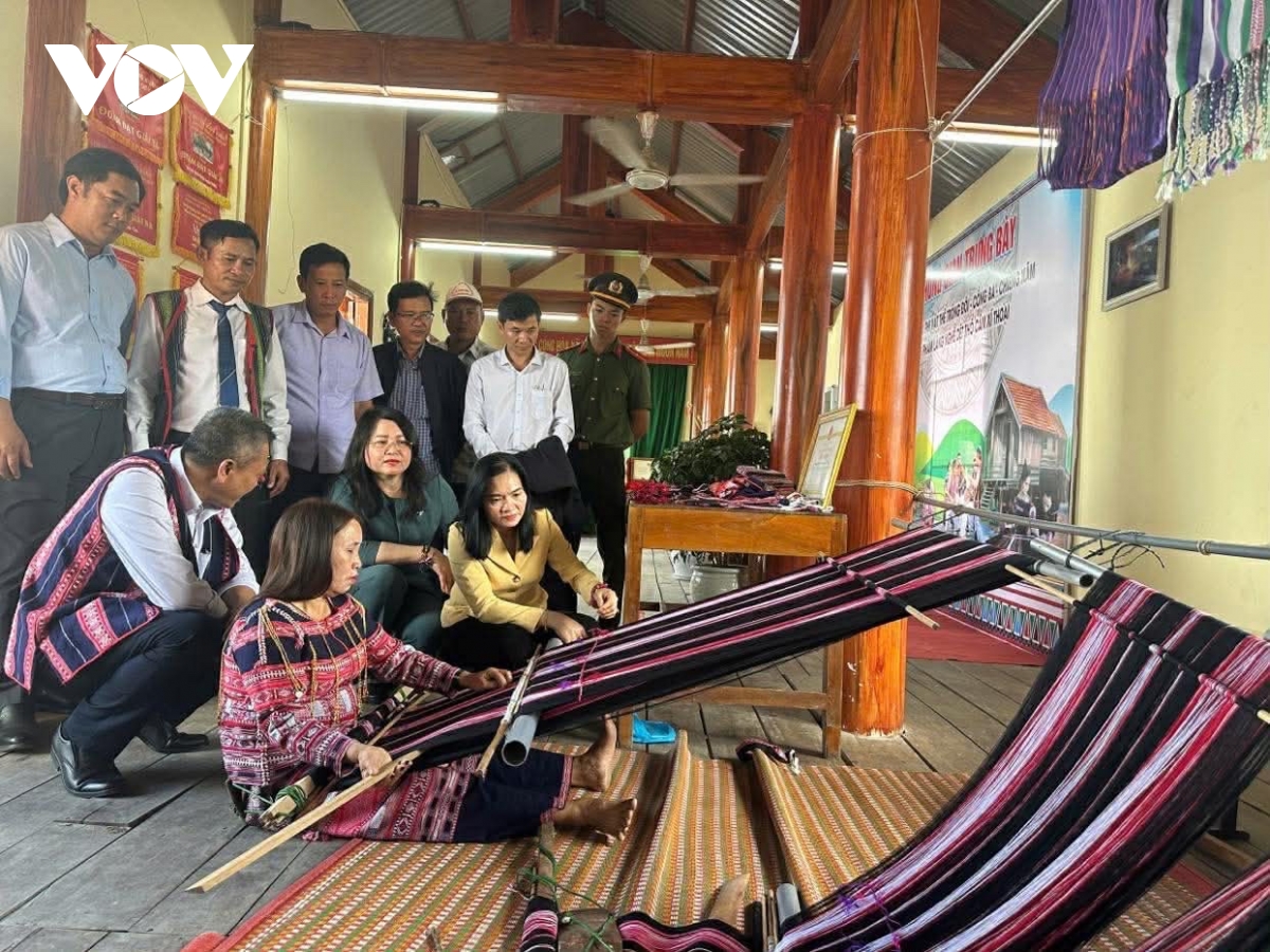 Trình diễn dệt thổ cẩm trong không gian lễ hội.