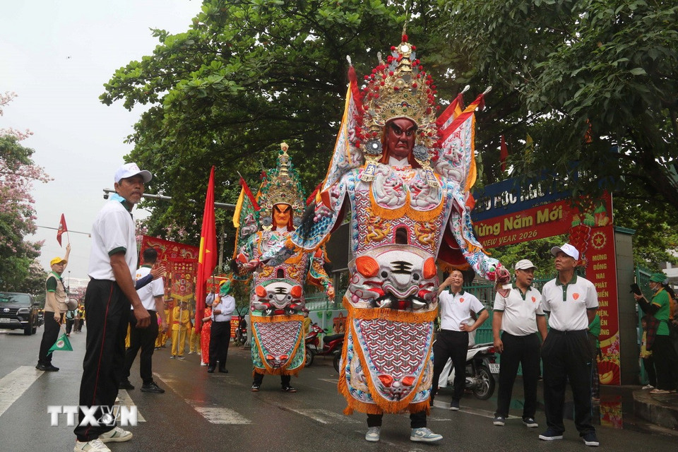 Đoàn nghinh thần di chuyển trên một tuyến phố ở phường Trấn Biên, tỉnh Đồng Nai. (Ảnh: Công Phong/TTXVN)