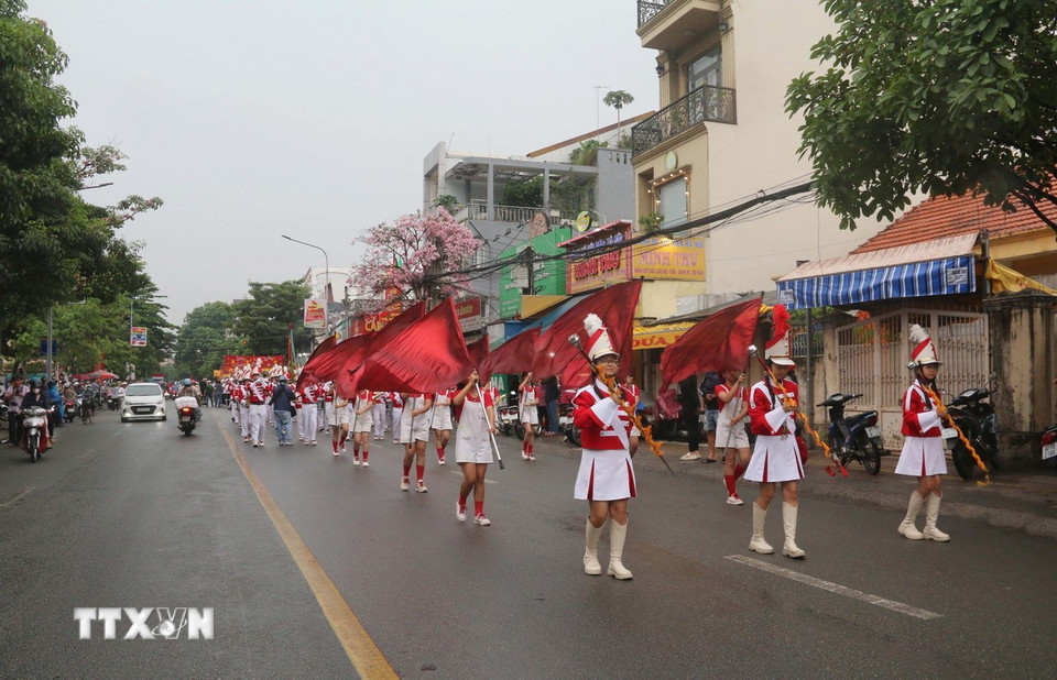 Các nhân vật lịch sử (hóa trang) di chuyển trên các tuyến phố ở phường Trấn Biên, tỉnh Đồng Nai. (Ảnh: Công Phong/TTXVN)
