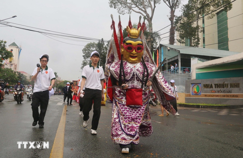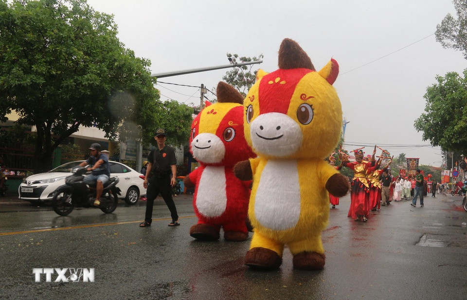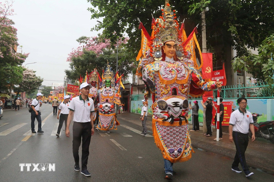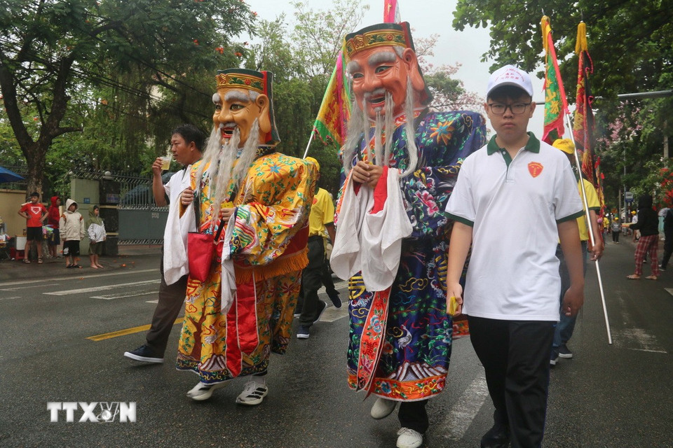 Hình tượng độc đáo trong đoàn nghinh thần. (Ảnh: Công Phong/TTXVN)