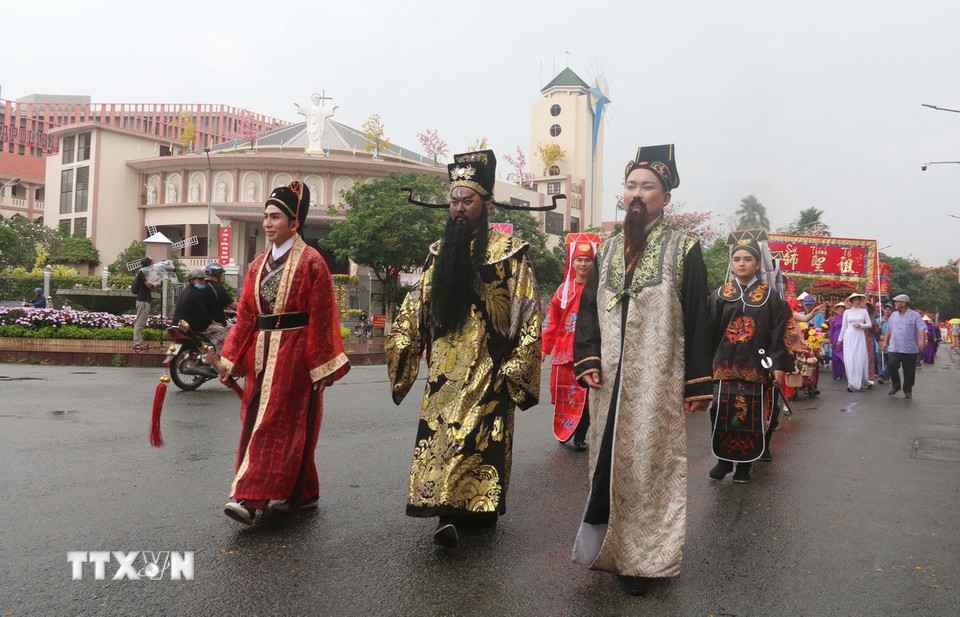 Hóa trang thành các nhân vật lịch sử tuần du trên các tuyến phố ở phường Trấn Biên, tỉnh Đồng Nai. (Ảnh: Công Phong/TTXVN)