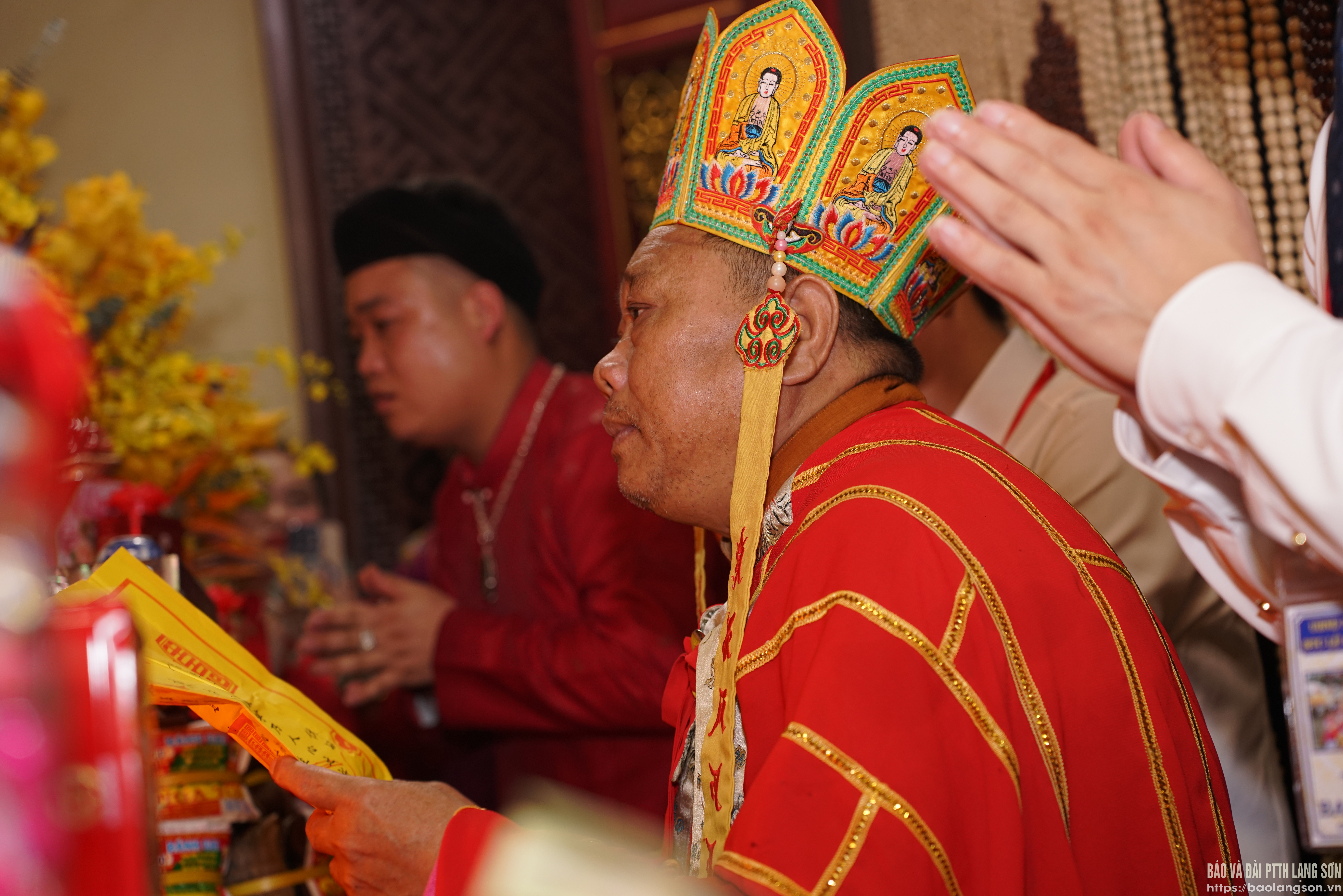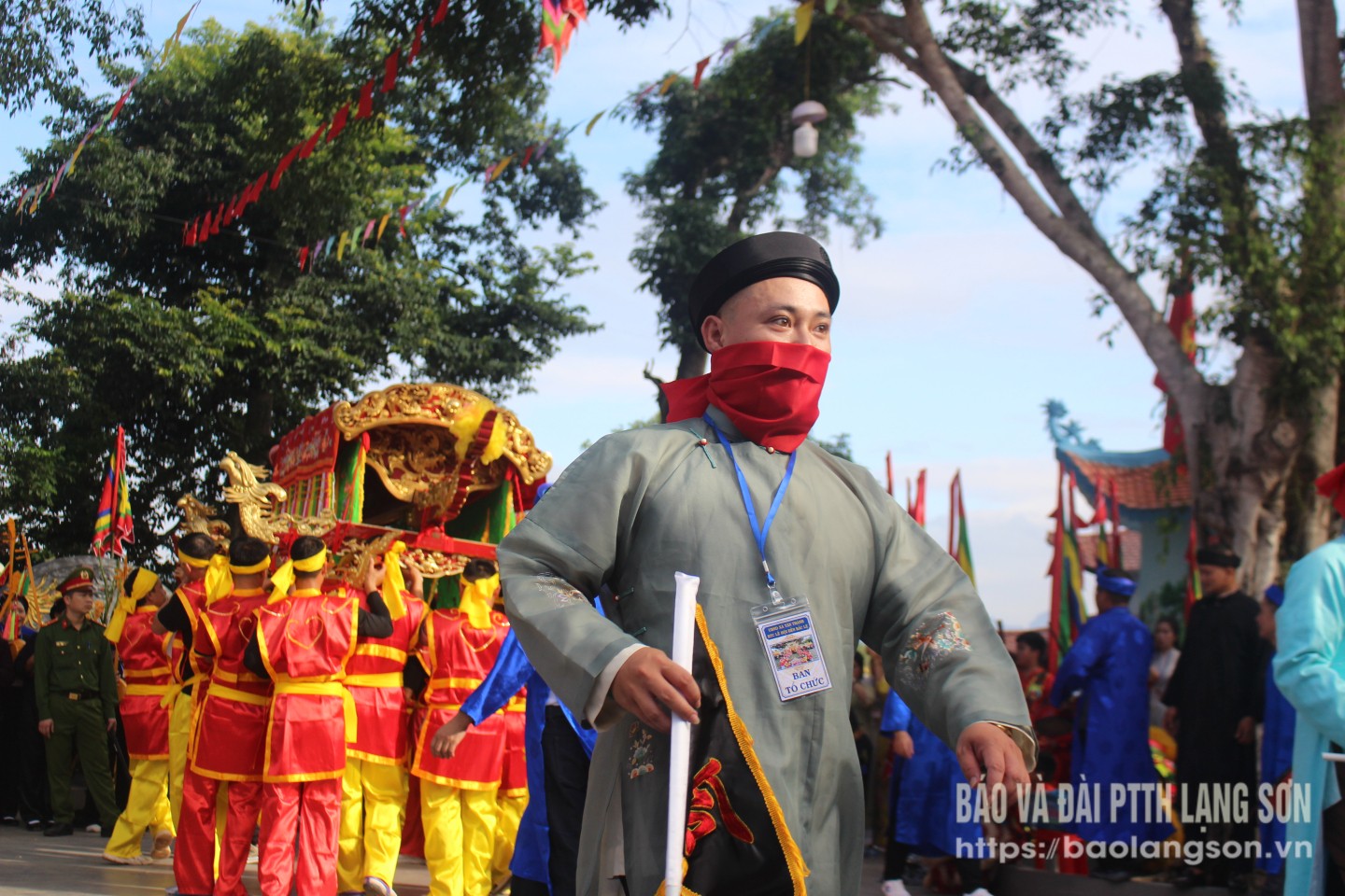 Những thanh đồng chịu trách nhiệm dẫn đầu mỗi kiệu và rước bát nhang, bài vị các vị Thánh vào đền đều đeo khăn vải đỏ che miệng vì theo quan niệm dân gian, con người hơi thở không được sạch sẽ và gây uế tạp, bất kính với các vị thánh.