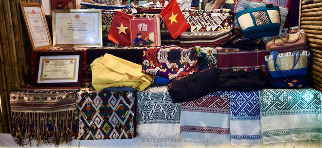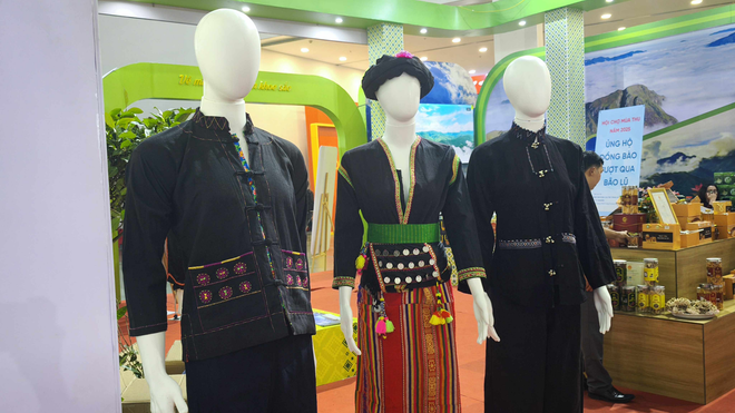 Trang phục truyền thống cũng được giới thiệu và bày bán tại gian hàng tỉnh Lai Châu. (Ảnh: Trịnh Huyền)