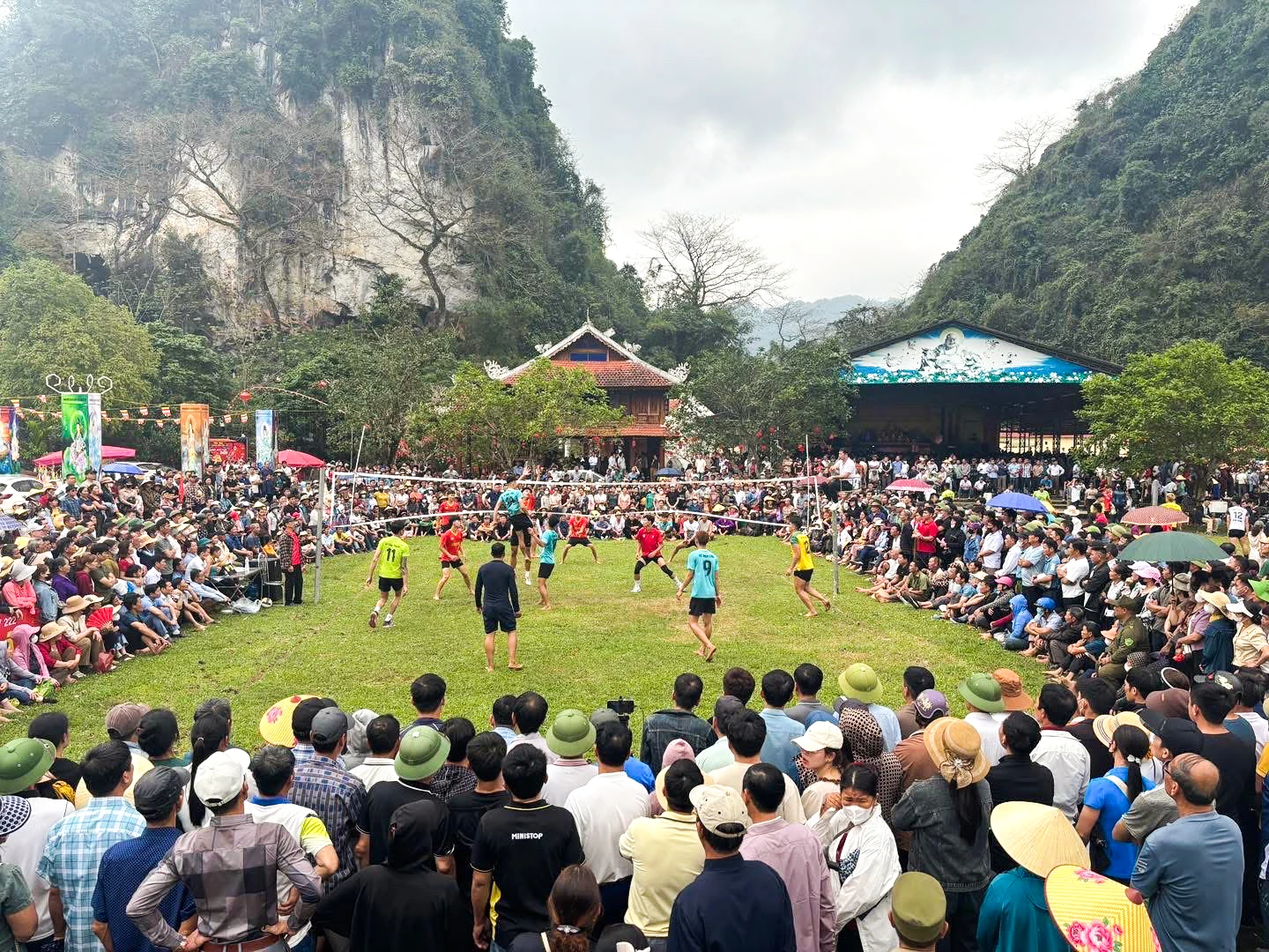 Hàng nghìn người dân và du khách cổ vũ bóng chuyền tại Lễ hội Chùa Rồng năm 2026.