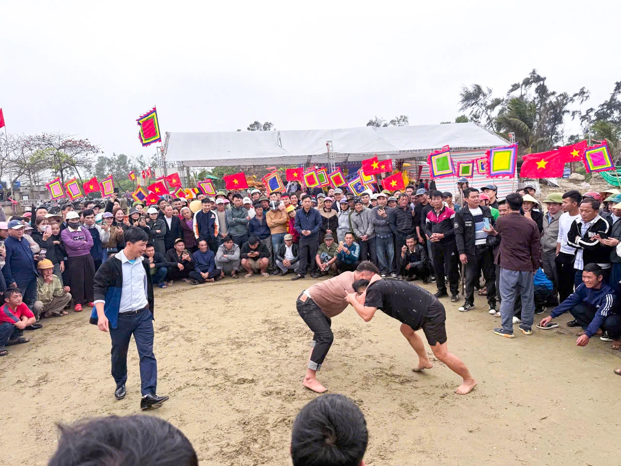 Đấu vật tại Lễ hội Cầu ngư Đông Hải Đại Vương, phường Nam Sầm Sơn.