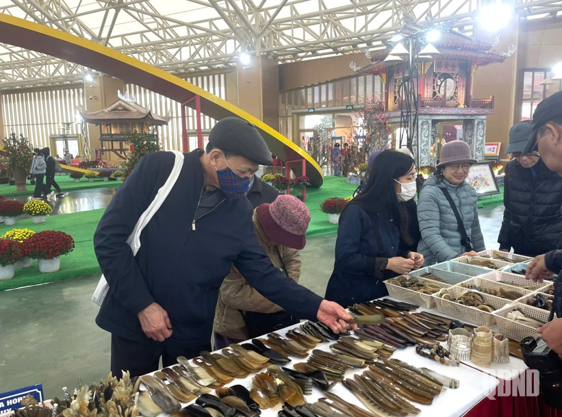 Các gian trưng bày hàng thủ công mỹ nghệ thu hút rất đông người dân và du khách.