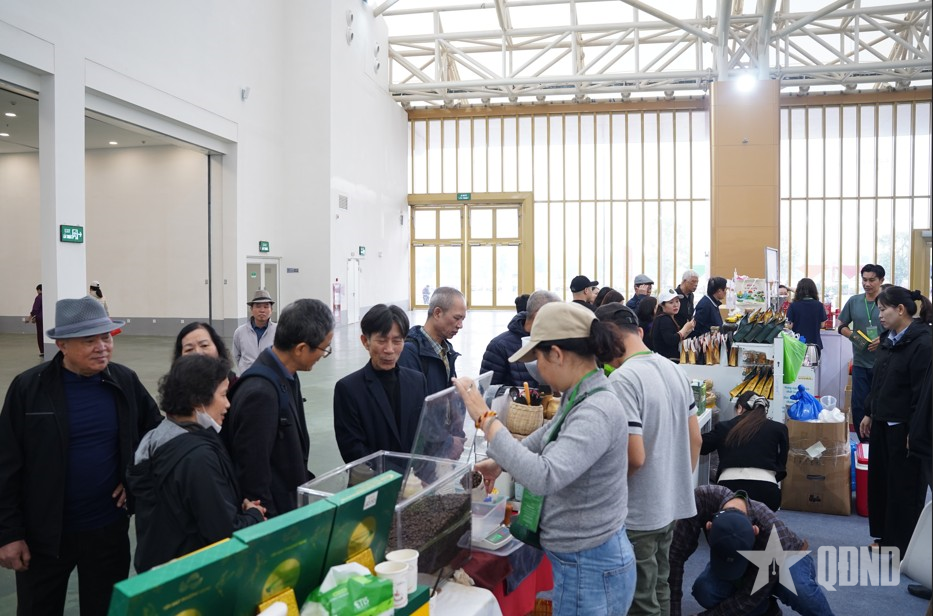 Tại khu vực trưng bày thực phẩm, ngay từ sáng sớm, nhiều gian hàng đã tấp nập khách ra vào. Các sản phẩm nông sản, thực phẩm chế biến truyền thống đến từ nhiều tỉnh, thành phố trên cả nước luôn thu hút người dân và du khách.
