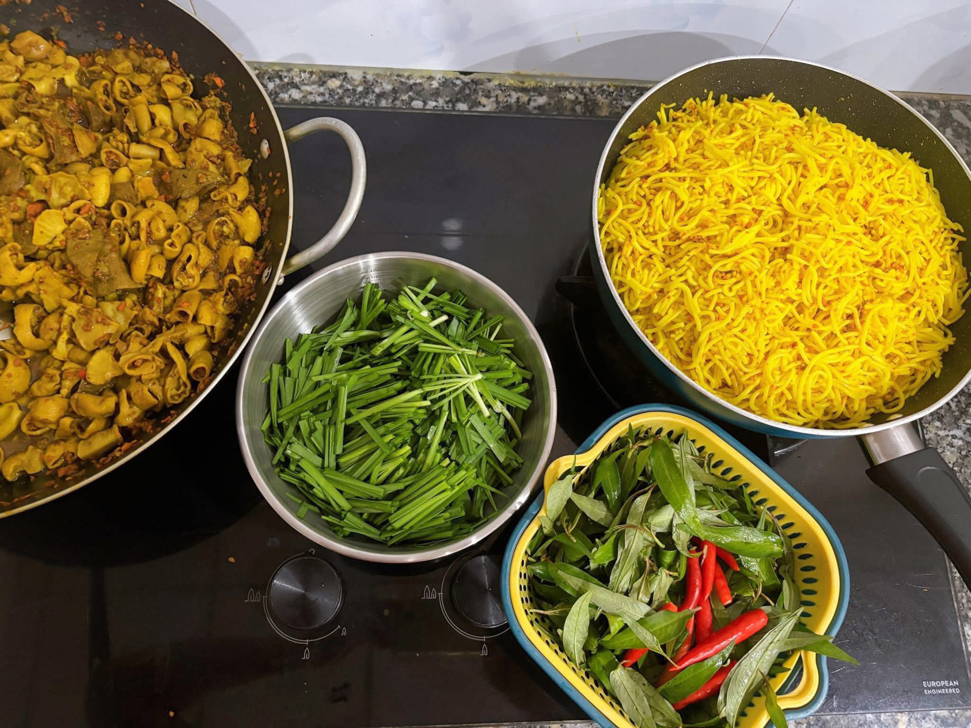 Các nguyên liệu chế biến món bún lòng xào nghệ. Ảnh: Dân dã miền quê