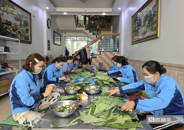 Bàn tay nhanh thoăn thoắt vừa gói nem vừa trò chuyện với PV, một công nhân chia sẻ, chị làm nghề gói nem cho gia đình anh Tuyên hơn 10 năm nay. Trung bình tháng trong năm có thu nhập từ 7-8 triệu đồng, tháng Tết làm việc hết công suất lương trên dưới 15 triệu.