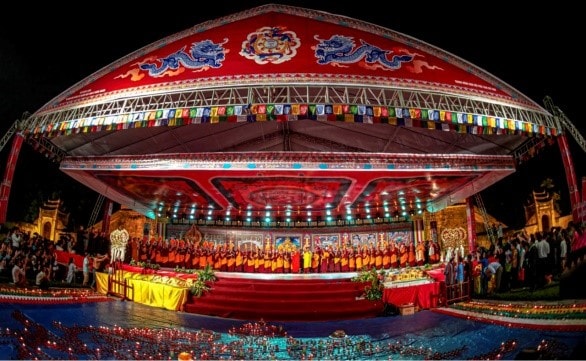 Sự kiện này được chuẩn bị công phu với hàng trăm ngọn đèn Phật linh thiêng trong khung cảnh ánh sáng Ngũ trí Như lai được thắp lên từ ngôi Đại Bảo Tháp.