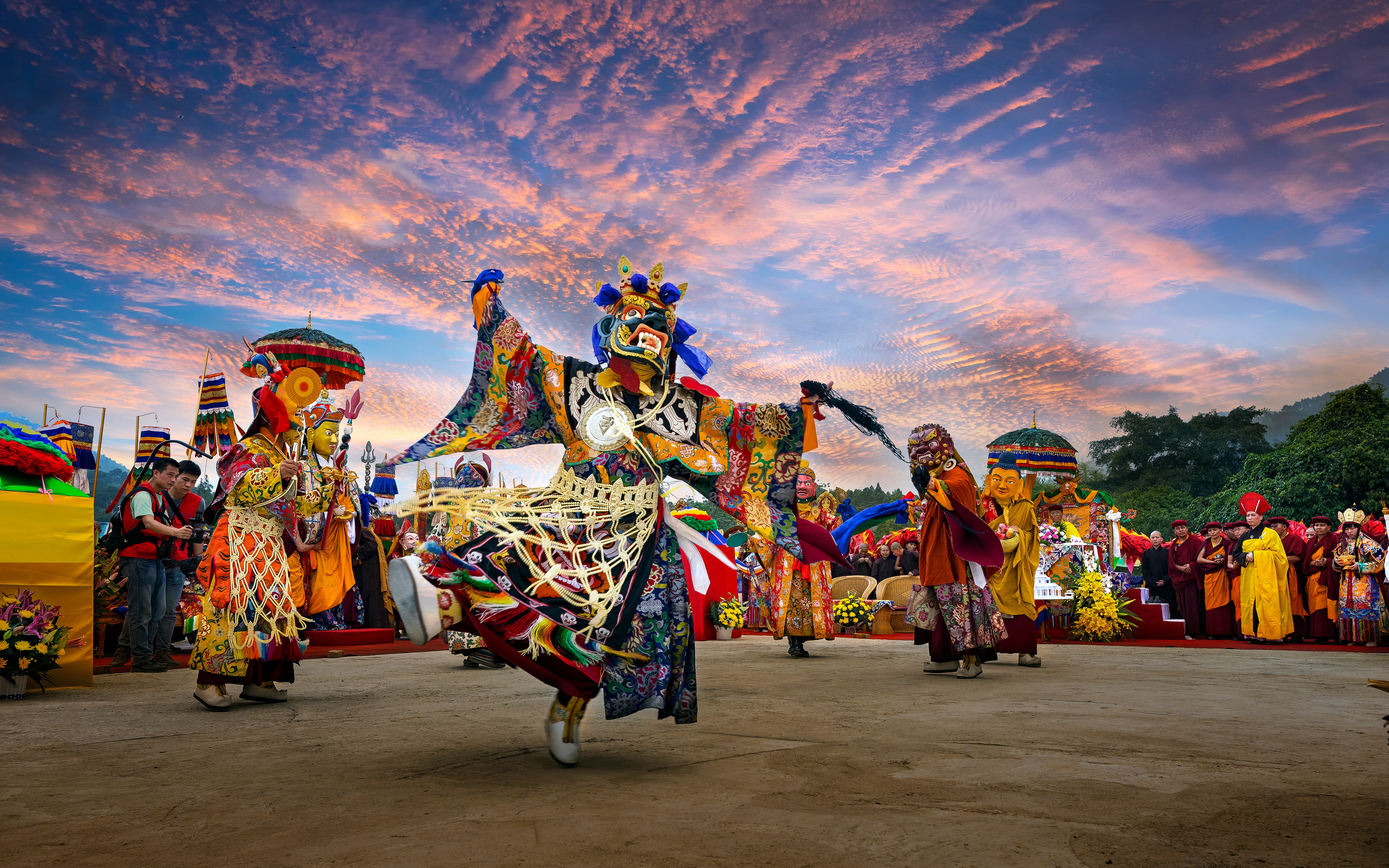 Vũ điệu Tám hóa thân Kim cương Thượng sư Liên Hoa Sinh tại Pháp hội Đại Bi Quan Âm, năm 2018. Ảnh: Drukpa Việt Nam