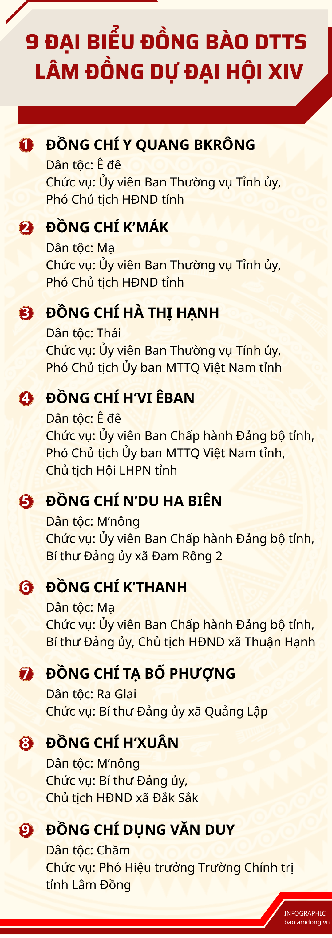 Sự hiện diện của các đại biểu người DTTS trong Đoàn đại biểu tỉnh Lâm Đồng là thể hiện tinh thần khối đại đoàn kết toàn dân tộc – nguồn sức mạnh to lớn làm nên mọi thắng lợi của cách mạng Việt Nam. Từ bon làng bình yên giữa đại ngàn đến diễn đàn chính trị lớn nhất của Đảng, tiếng nói của đồng bào các dân tộc Lâm Đồng sẽ tiếp tục được lan tỏa, góp phần vào thành công của Đại hội XIV, vì mục tiêu xây dựng đất nước Việt Nam phồn vinh, hạnh phúc.