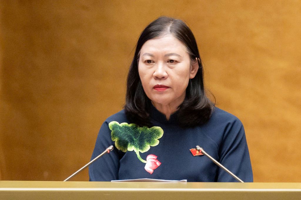 Chủ nhiệm Ủy ban Dân nguyện và Giám sát Lê Thị Nga trình bày dự kiến chương trình giám sát của Quốc hội. Ảnh: QH