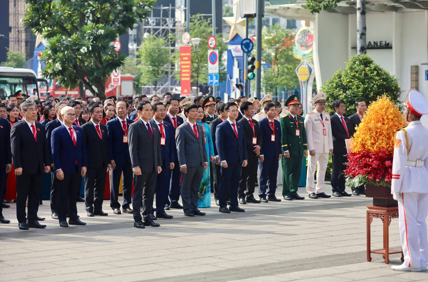 Sau khi dâng hương ở Nghĩa trang Liệt sĩ TPHCM, đoàn đại biểu đã đến đặt vòng hoa tại Tượng đài Chủ tịch Hồ Chí Minh trên đường Nguyễn Huệ (phường Sài Gòn), thành kính tri ân, tưởng nhớ công lao to lớn của Chủ tịch Hồ Chí Minh.