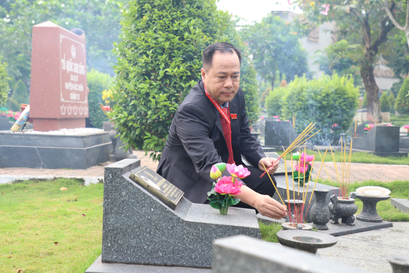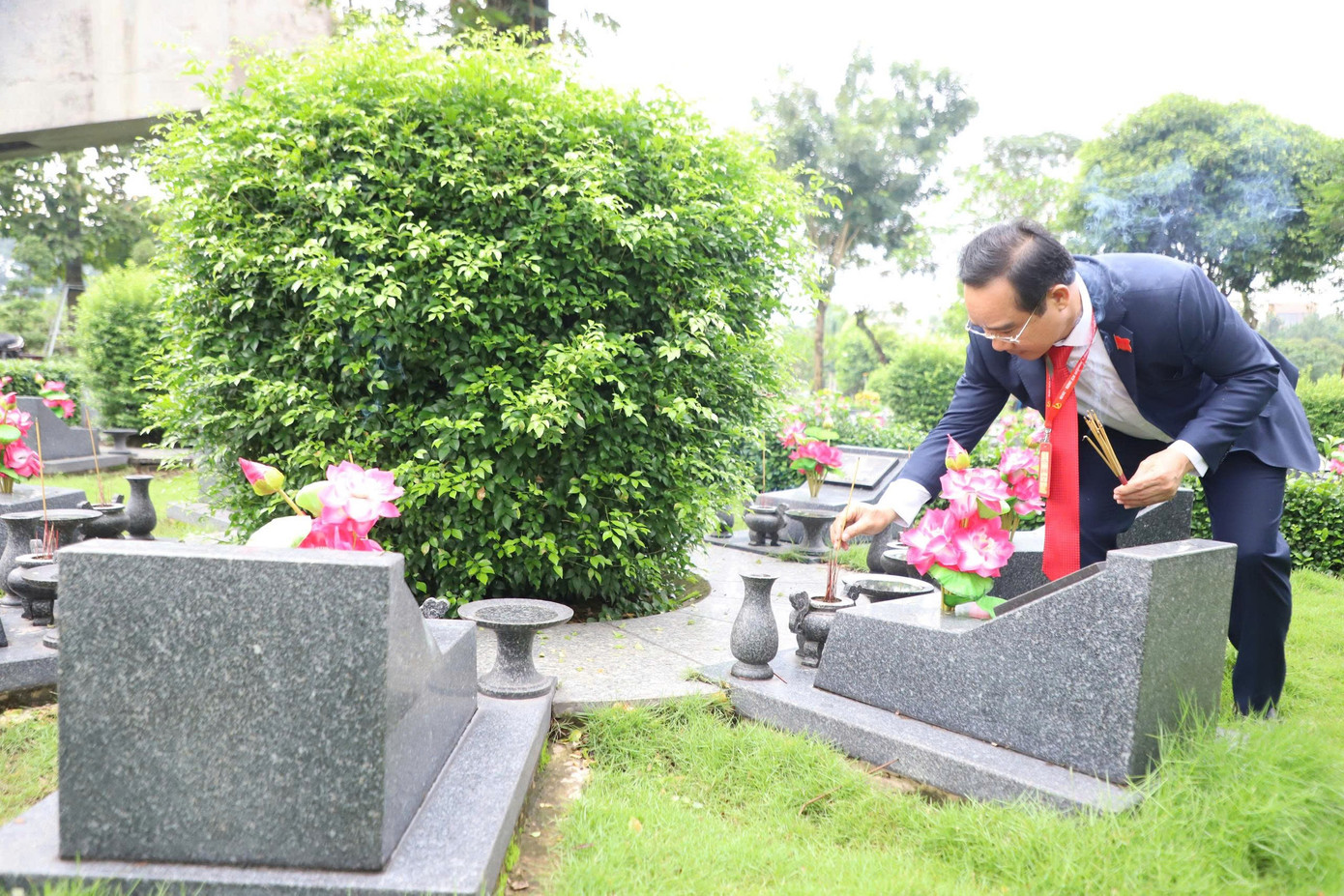 Đoàn đại biểu thành kính dâng hoa, dâng hương tưởng nhớ công ơn các Mẹ Việt Nam anh hùng, Anh hùng liệt sĩ. Sau lễ dâng hoa, dâng hương, các đại biểu đã đến phần mộ của các Anh hùng liệt sĩ thắp những nén hương thơm để tưởng nhớ và tri ân.