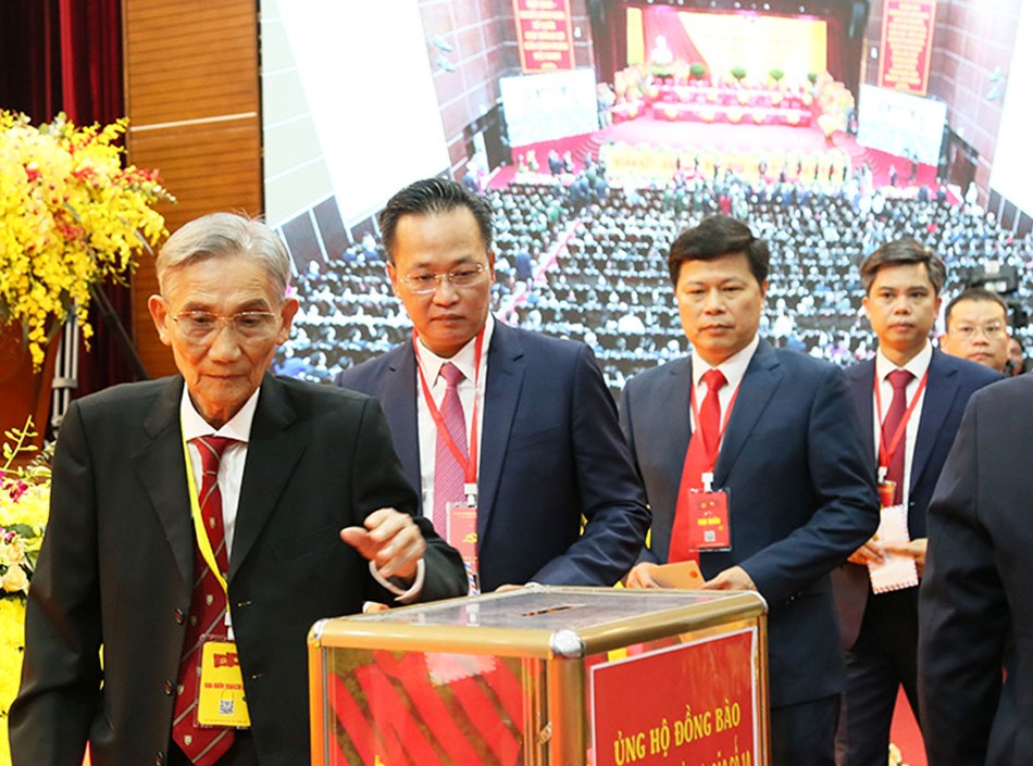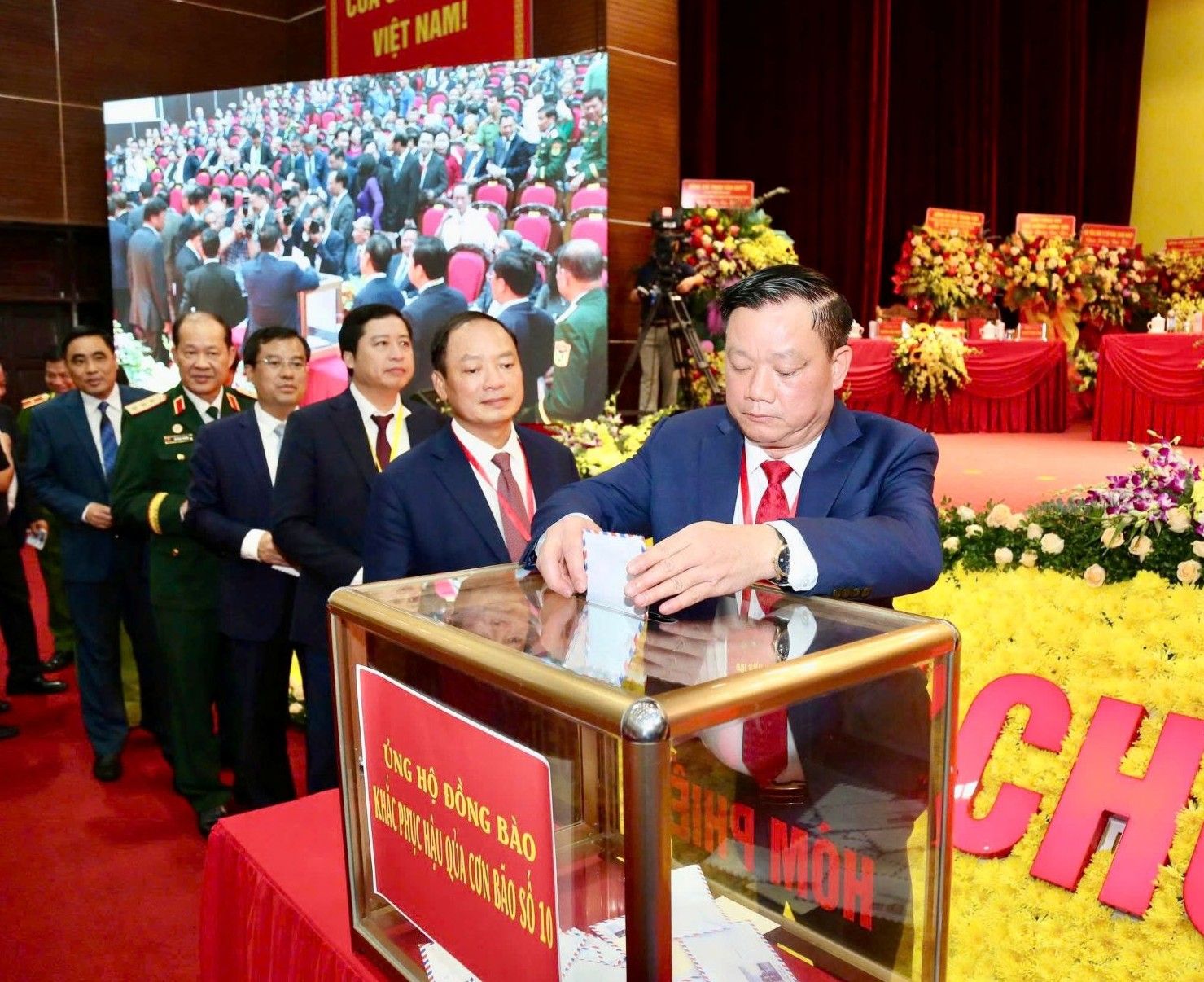 Các lãnh đạo tỉnh Hưng Yên cùng các đại biểu dự Đại hội ủng hộ đồng bào bị thiệt hại do cơn bão số 10 gây ra.