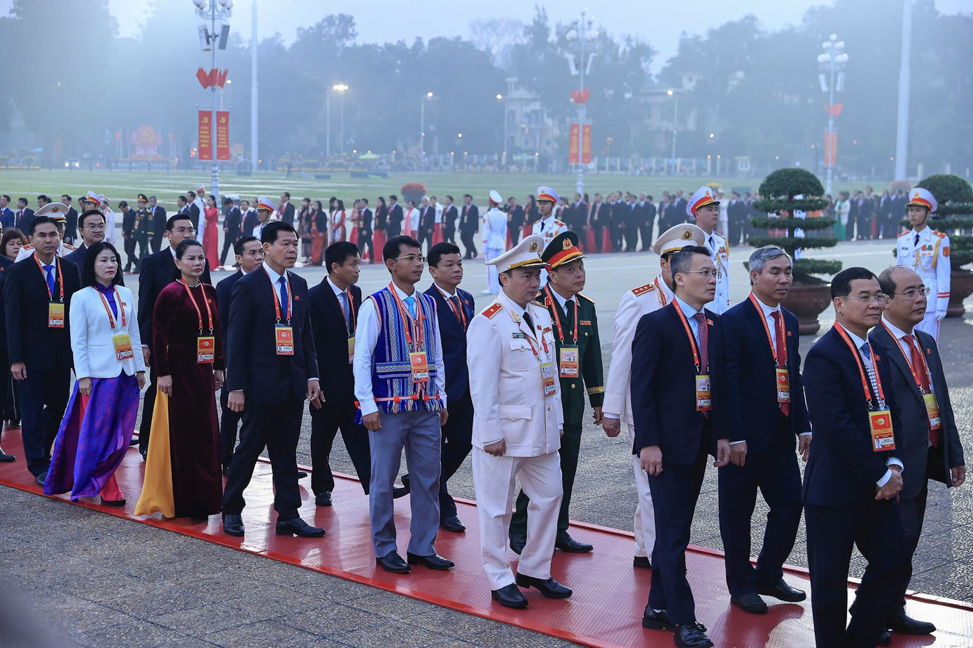 Tổng Bí thư Tô Lâm cùng các đồng chí lãnh đạo Đảng, Nhà nước và đại biểu dự Đại hội đại biểu toàn quốc lần thứ XIV của Đảng đặt vòng hoa, viếng Chủ tịch Hồ Chí Minh.