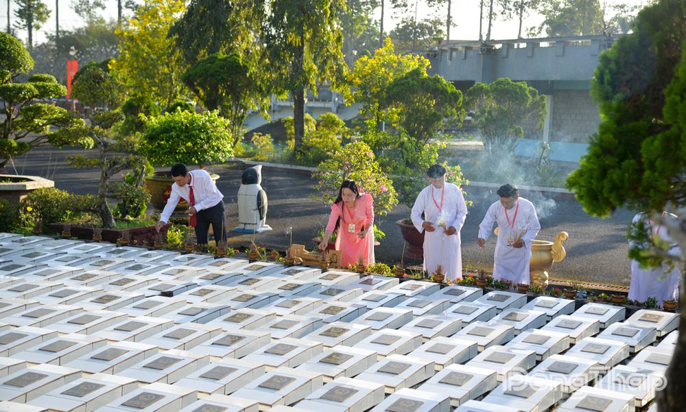 Đại biểu thắp hương từng phần mộ các Anh hùng liệt sĩ.