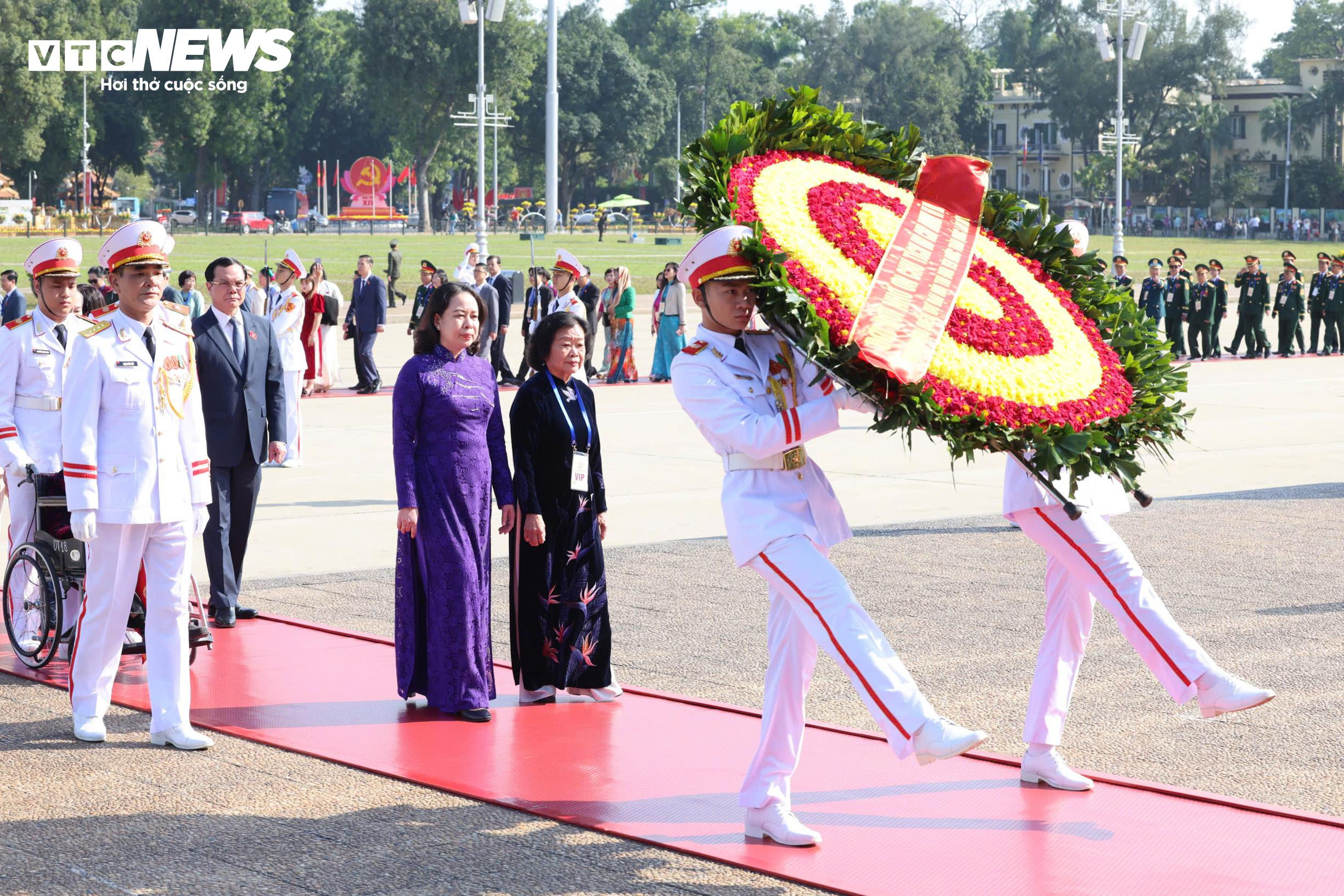 Phó Chủ tịch nước Võ Thị Ánh Xuân cùng các đại biểu vào Lăng viếng Chủ tịch Hồ Chí Minh.
