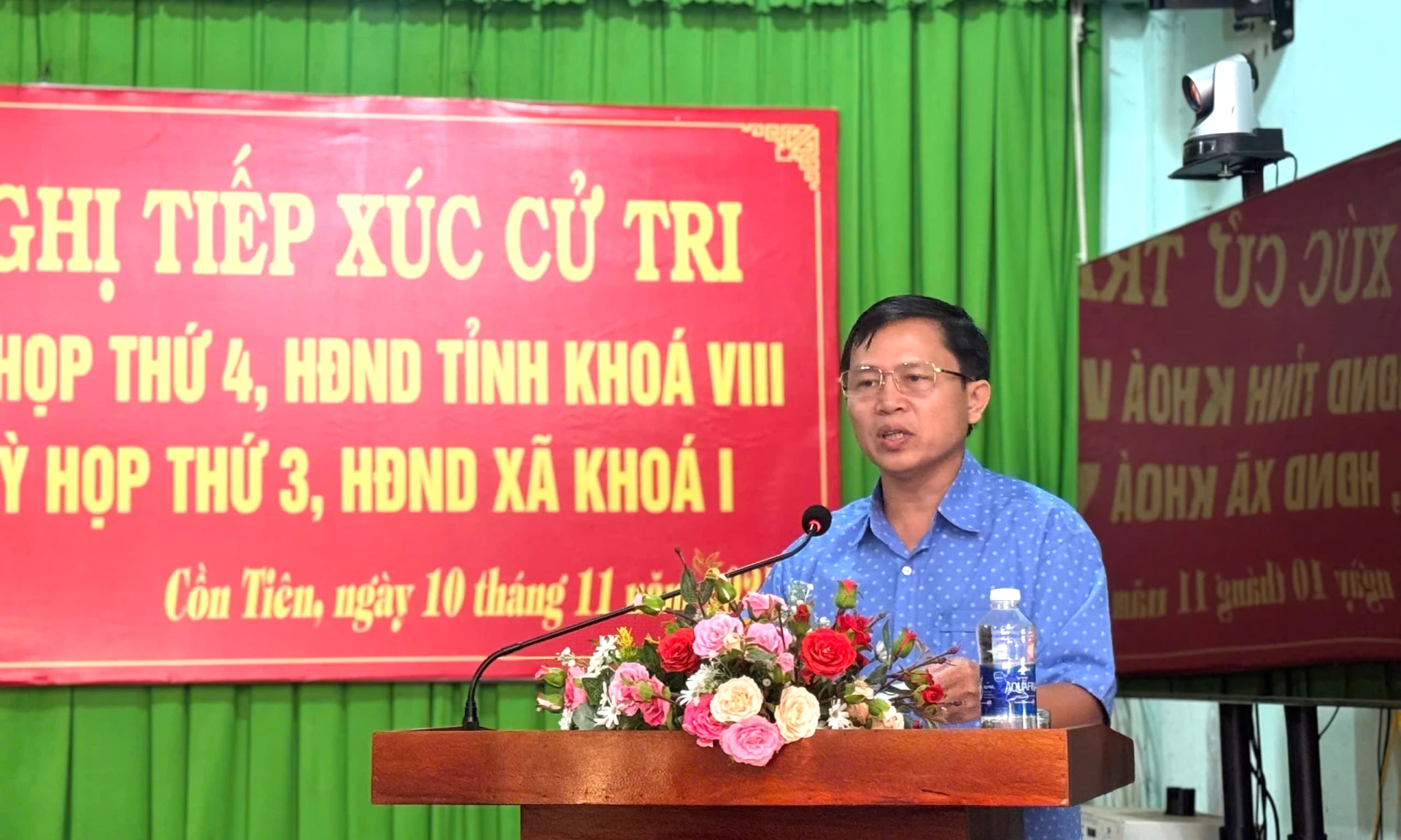 Tại buổi tiếp xúc, cử tri xã Cồn Tiên đã nghe đại diện Tổ đại biểu HĐND tỉnh báo cáo dự kiến nội dung, chương trình kỳ họp thứ 4, HĐND tỉnh khóa VIII; thông báo kết quả giải quyết, trả lời ý kiến, kiến nghị cử tri của các ngành, địa phương liên quan.