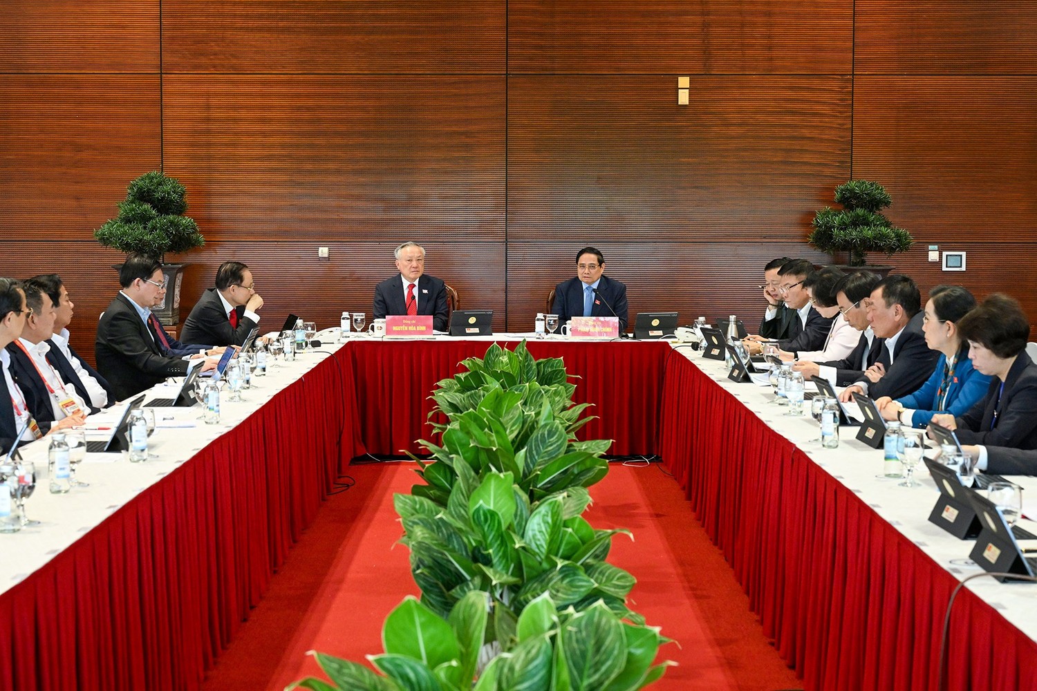 Đồng chí Phạm Minh Chính, Ủy viên Bộ Chính trị, Thủ tướng Chính phủ phát biểu trong buổi thảo luận tại Đoàn.
