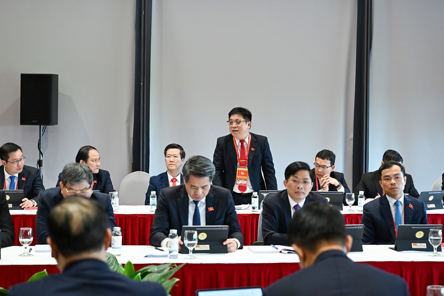 Đoàn đại biểu Đảng bộ Thành phố Hồ Chí Minh thảo luận các văn kiện Đại hội tại Đoàn.
