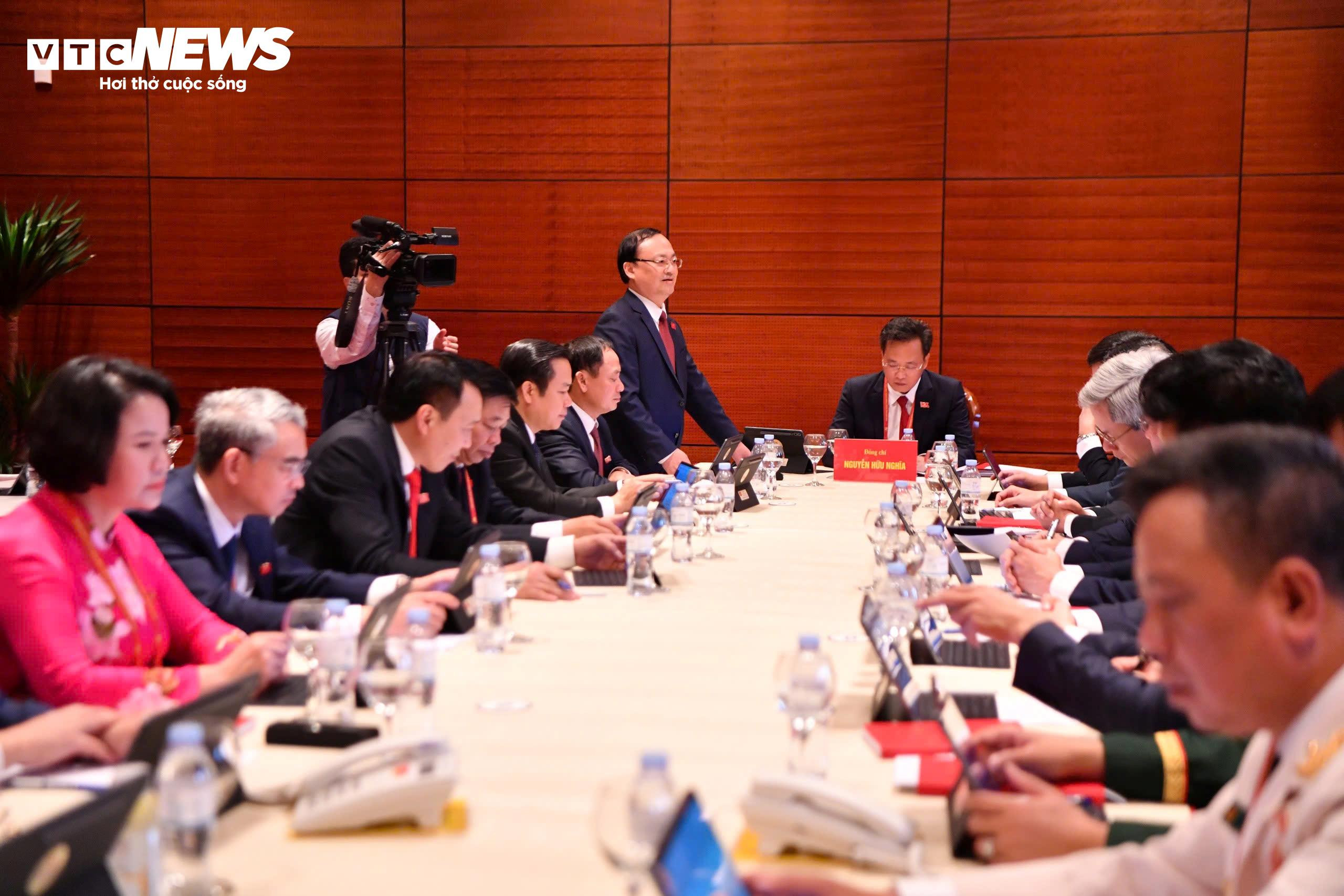 Các đại biểu thảo luận tại Đoàn. (Ảnh: Nhạc Dương)