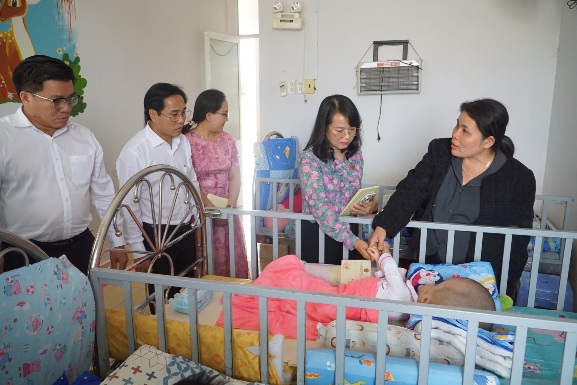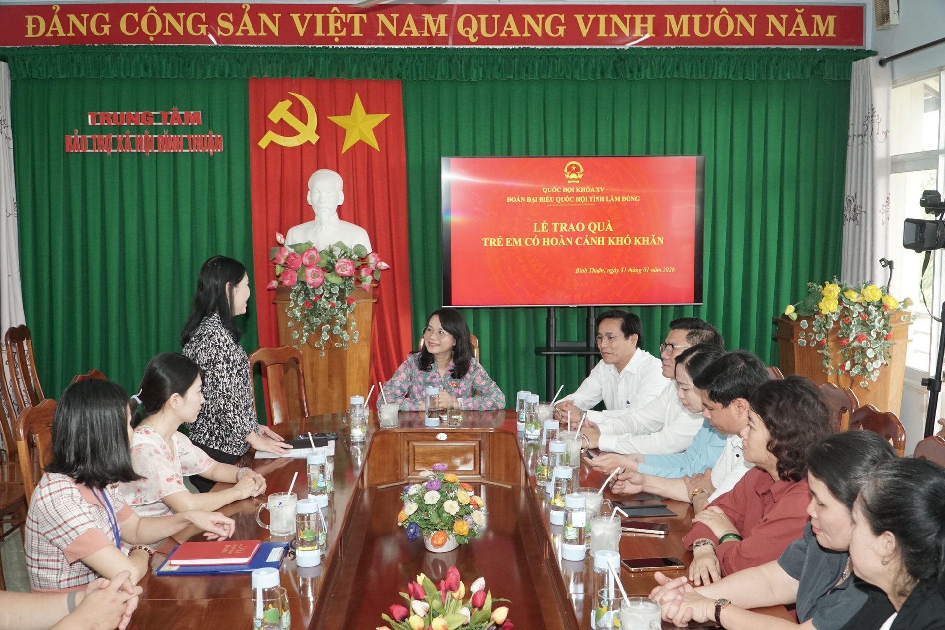 Đồng chí Phạm Thị Hồng Yến và lãnh đạo phường Bình Thuận thăm, tặng quà các cháu tại Trung tâm Bảo trợ xã hội Bình Thuận