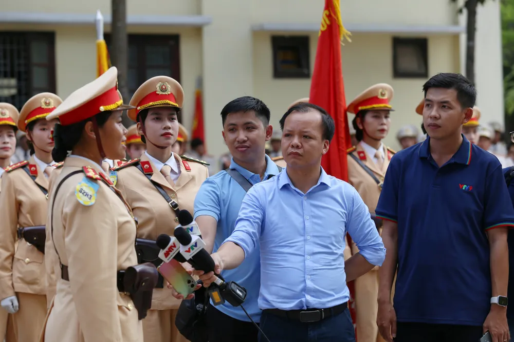 Phóng viên các cơ quan báo chí tác nghiệp tại các buổi huấn luyện diễu binh, diễu hành chào mừng kỷ niệm ngày Giải phóng miền Nam, thống nhất đất nước (30-4-1975 _ 30-4-2025). Ảnh: HOÀNG GIANG