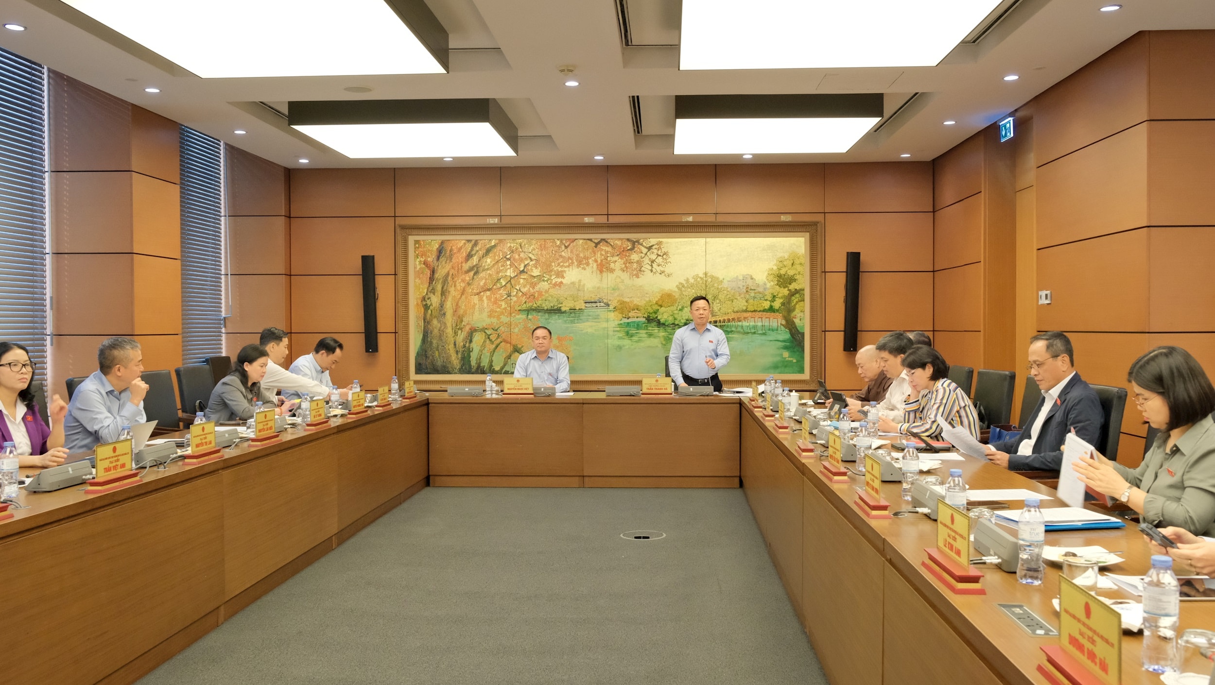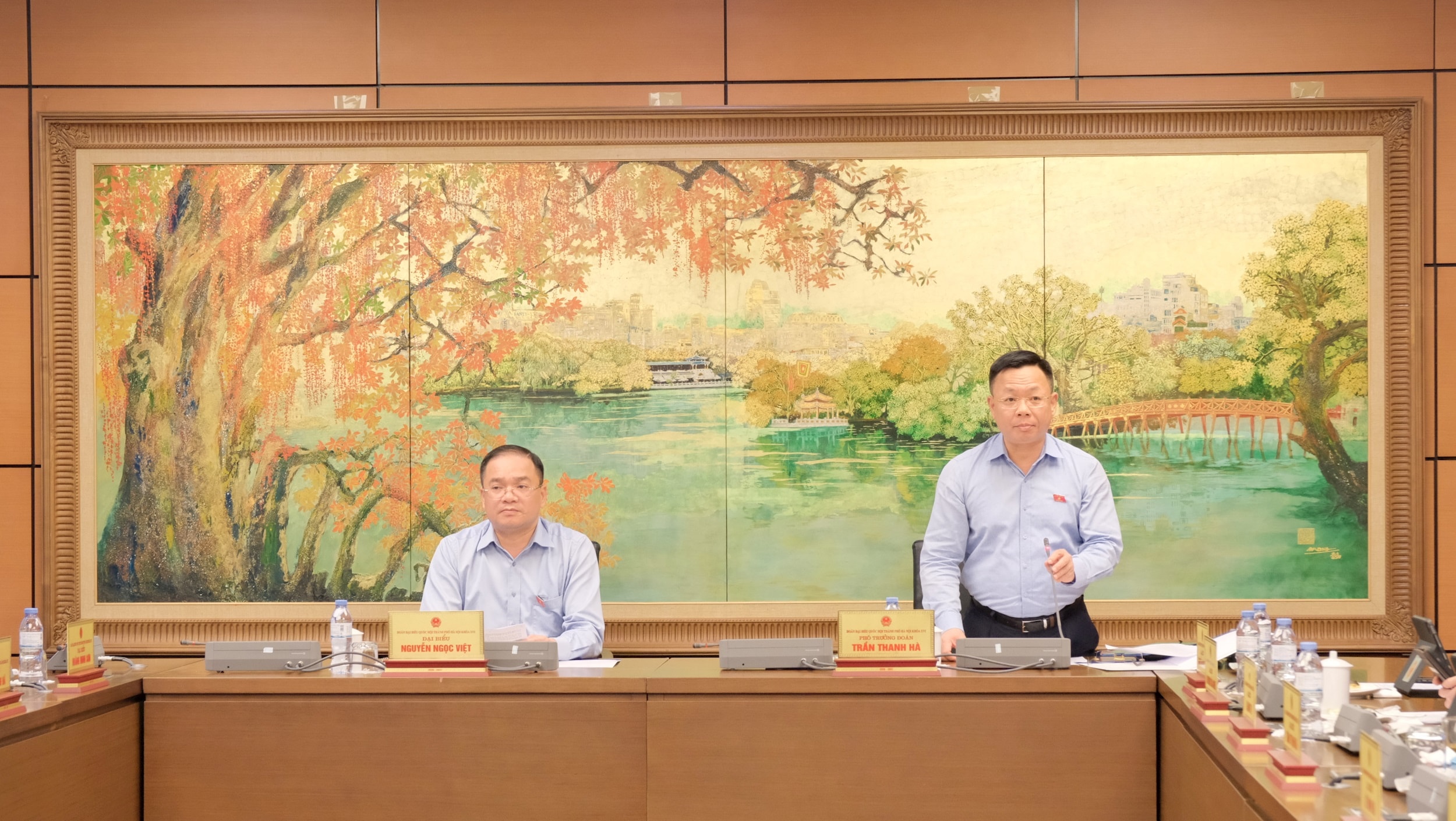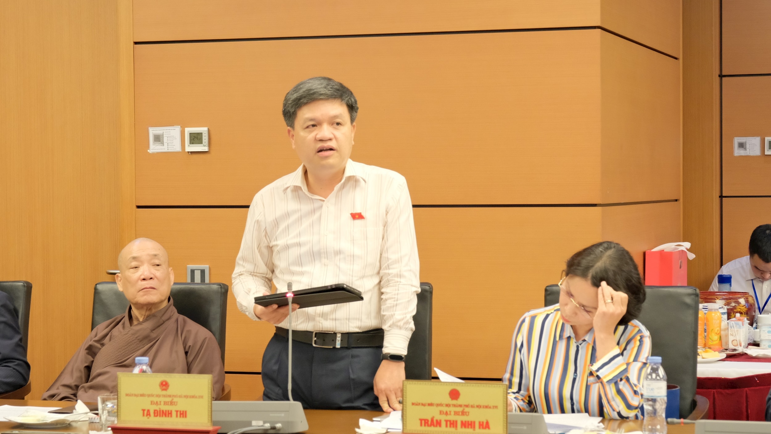 Chủ tọa điều hành phiên thảo luận tại tổ đại biểu Quốc hội Đoàn Hà Nội chiều 9-4. Ảnh: Thịnh An