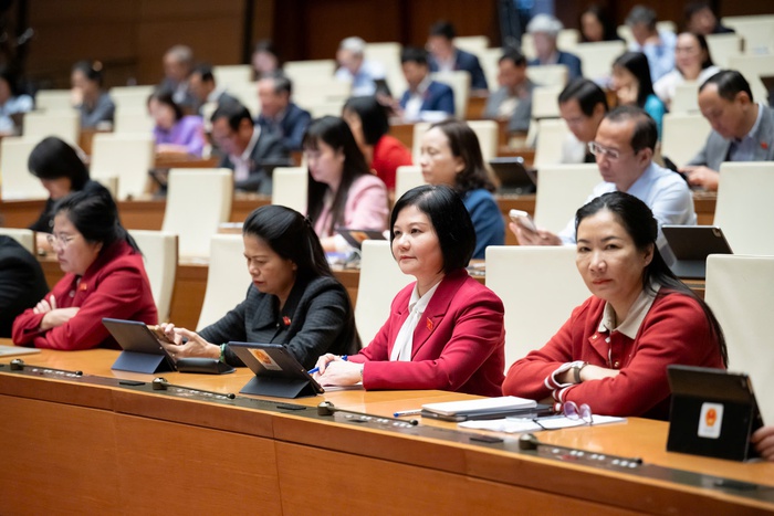 Các ĐBQH tham dự phiên thảo luận ở hội trường