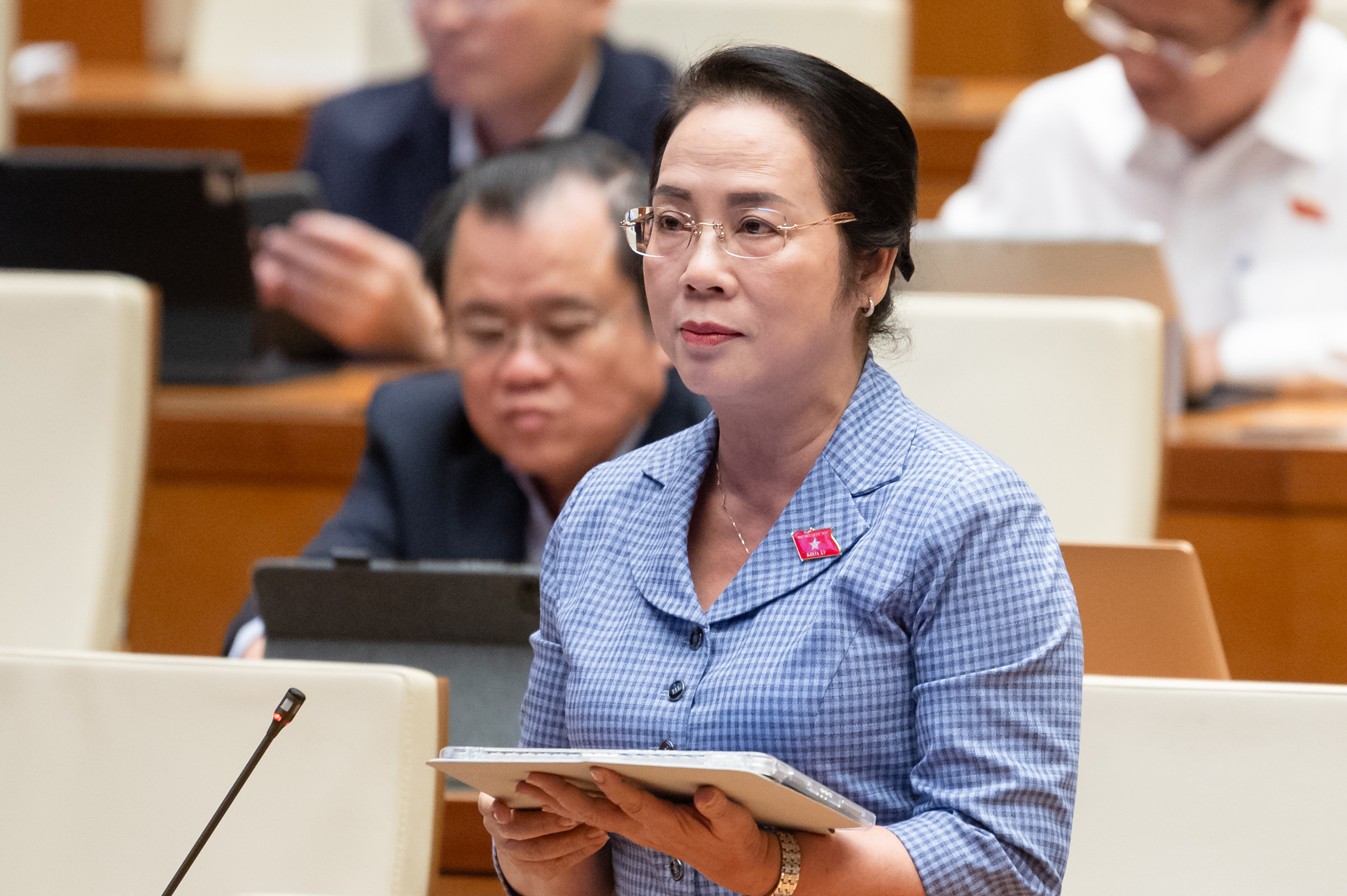 Đại biểu Trần Kim Yến (đoàn TP.HCM) góp ý dự thảo nghị quyết. Ảnh: Media Quốc hội.
