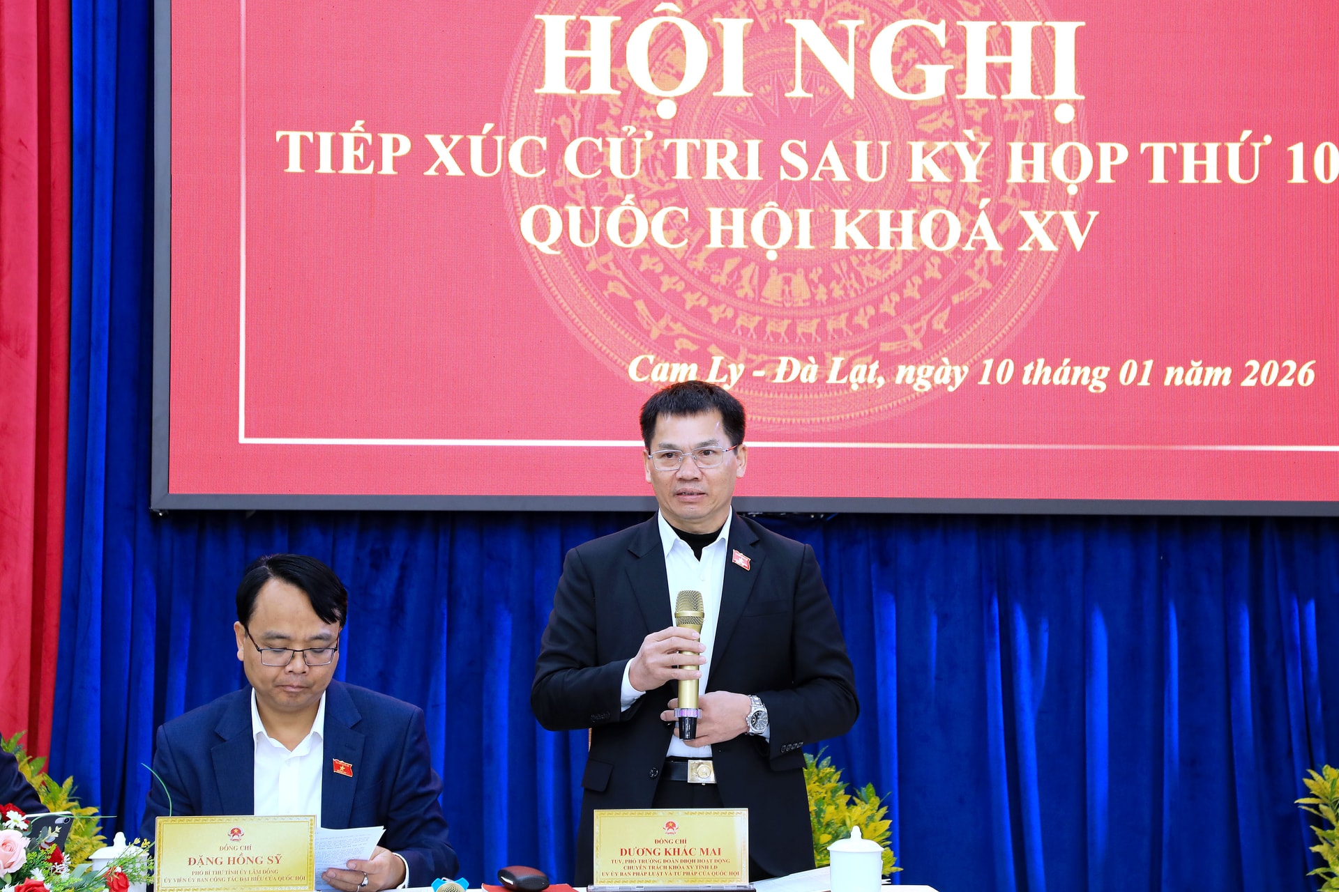Phó Trưởng đoàn chuyên trách Đoàn ĐBQH Lâm Đồng Dương Khắc Mai thông tin kết quả xử lý các kiến nghị qua các đợt tiếp xúc cử tri